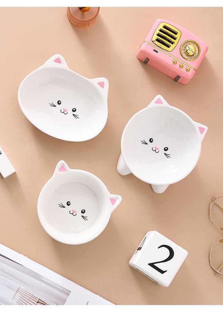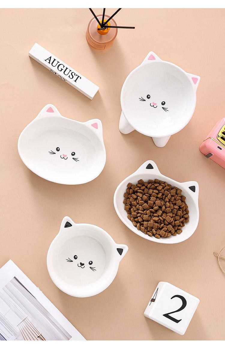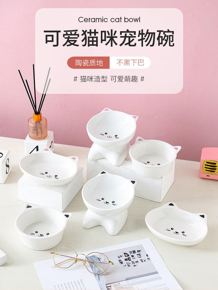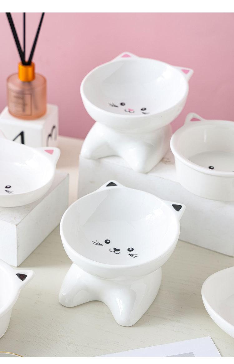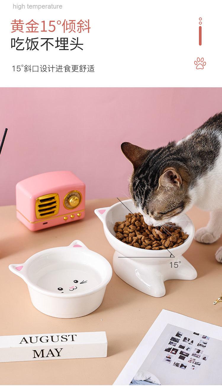 Tazón para gato de cerámica protector de columna cervical pie alto antigolpes suministros para mascotas oblicuo para comer y beber gato perro tazón para comida de gato