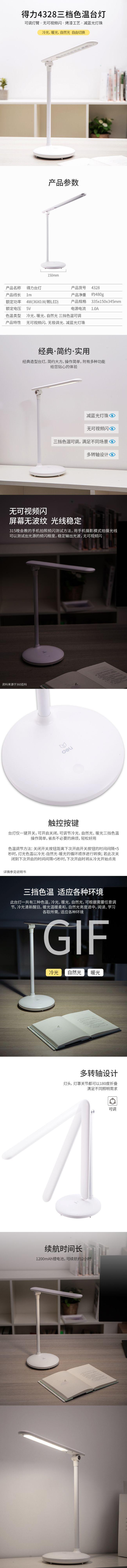 Lámpara Deli 4328 para lectura y aprendizaje de estudiantes, lámpara de noche con atenuación, lámpara de estudio de moda simple, lámpara LED recargable
