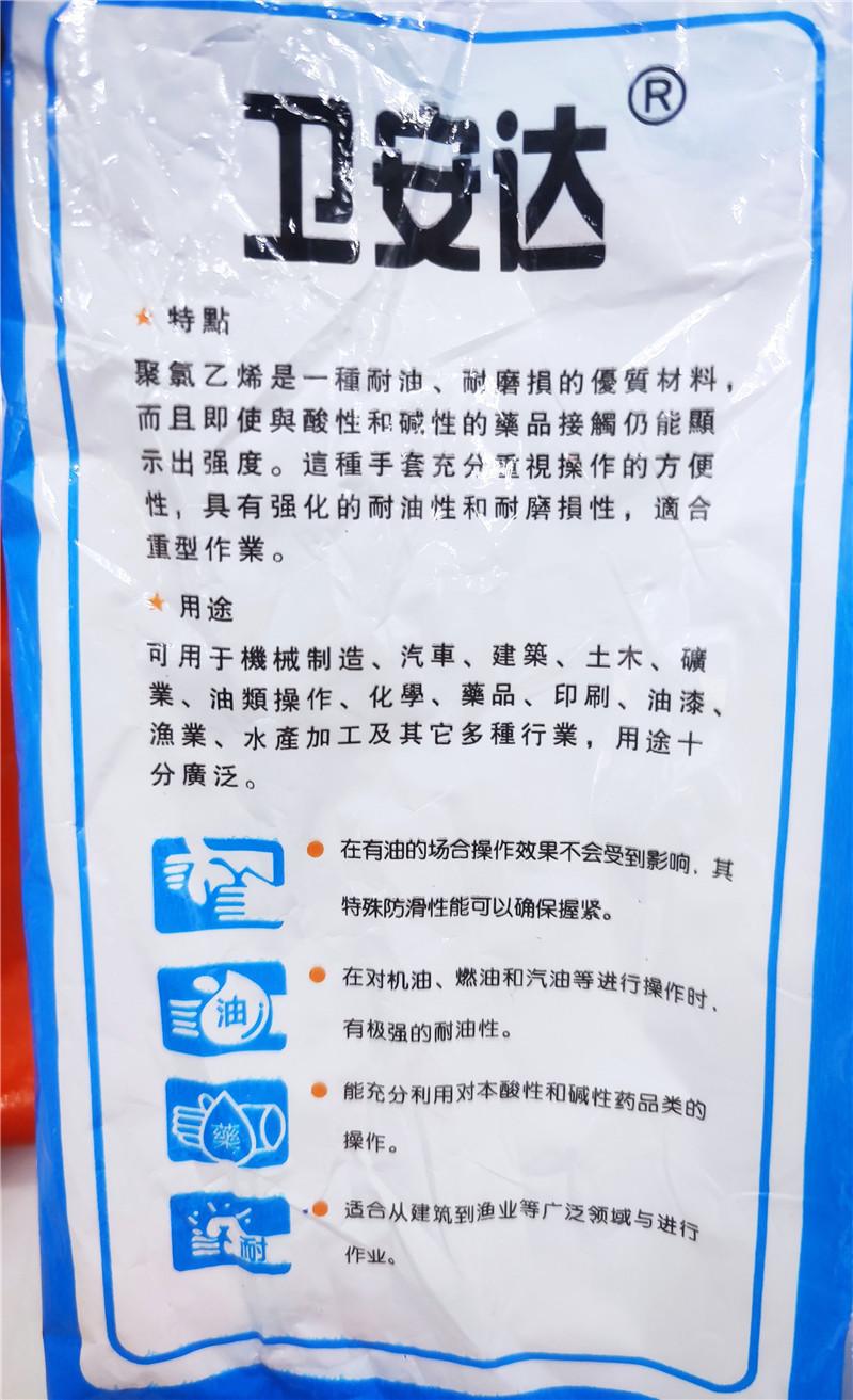 Características del producto: El fluoruro de polivinilo es un material de alta calidad que es resistente al aceite y al desgaste. Este tipo de guantes presta total atención a la conveniencia de operación, tiene buenas propiedades logísticas y es adecuado para operaciones pesadas.