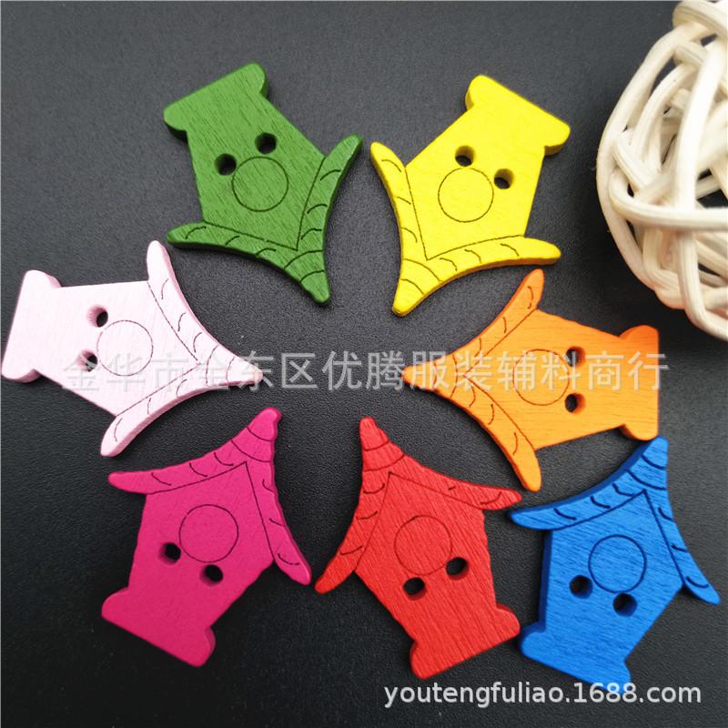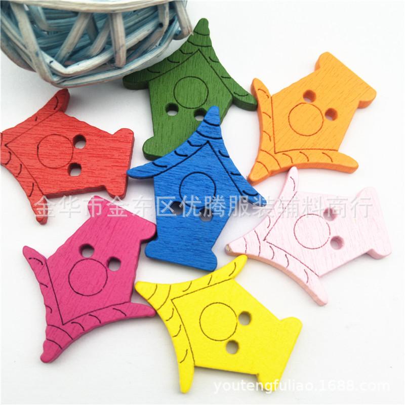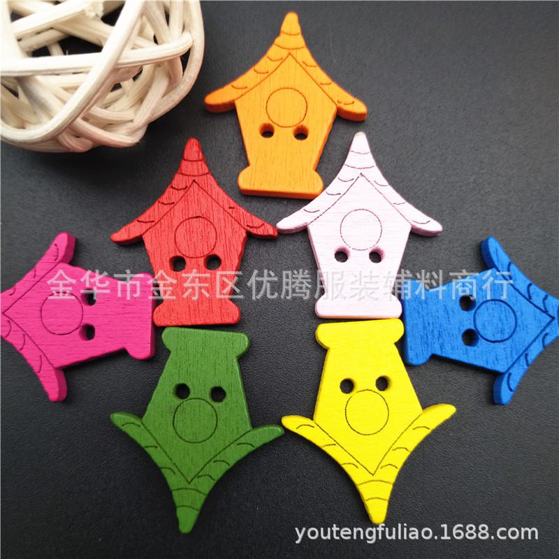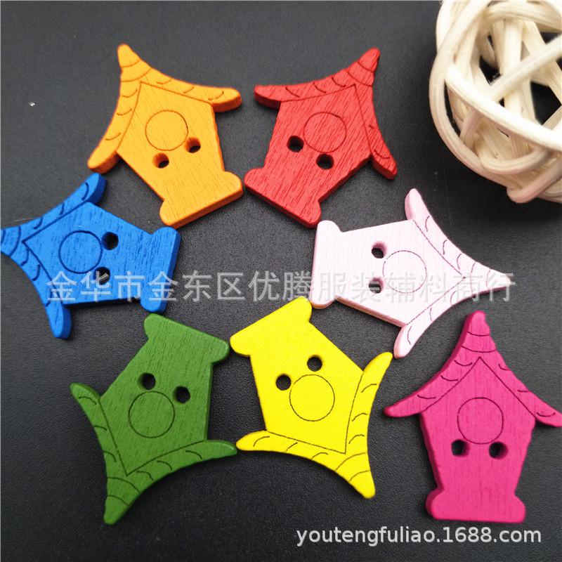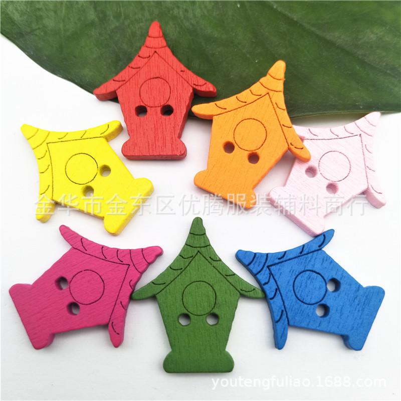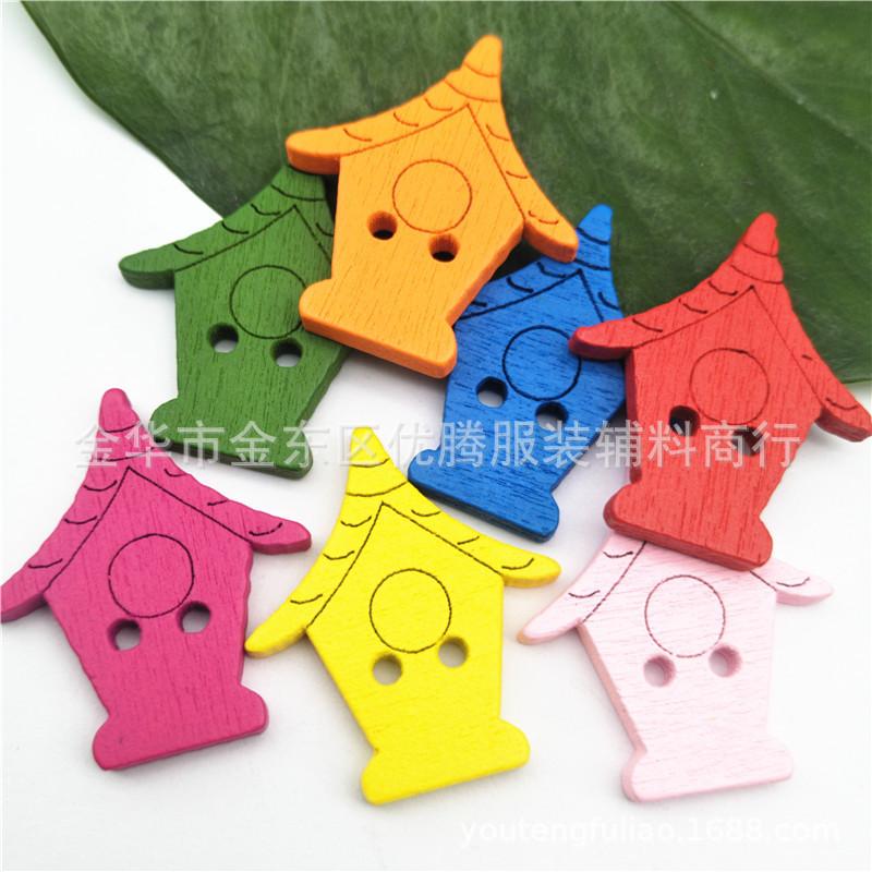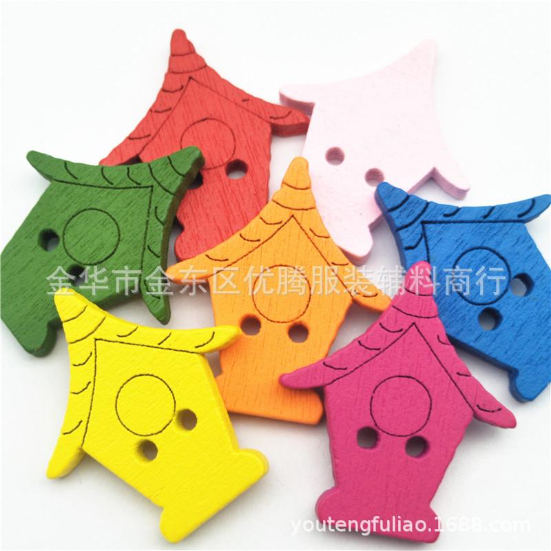 Nombre: Botones de madera de casa colorida, grandes cantidades disponibles