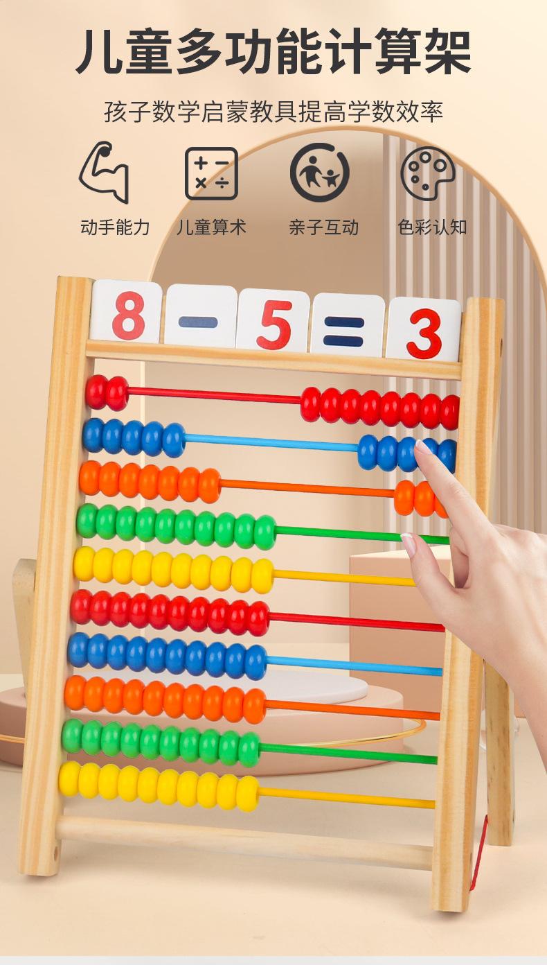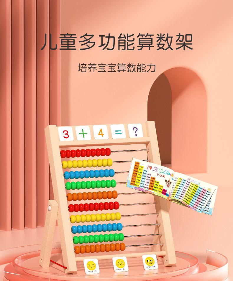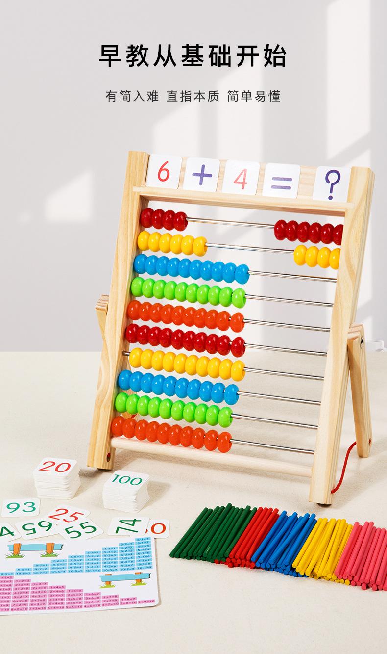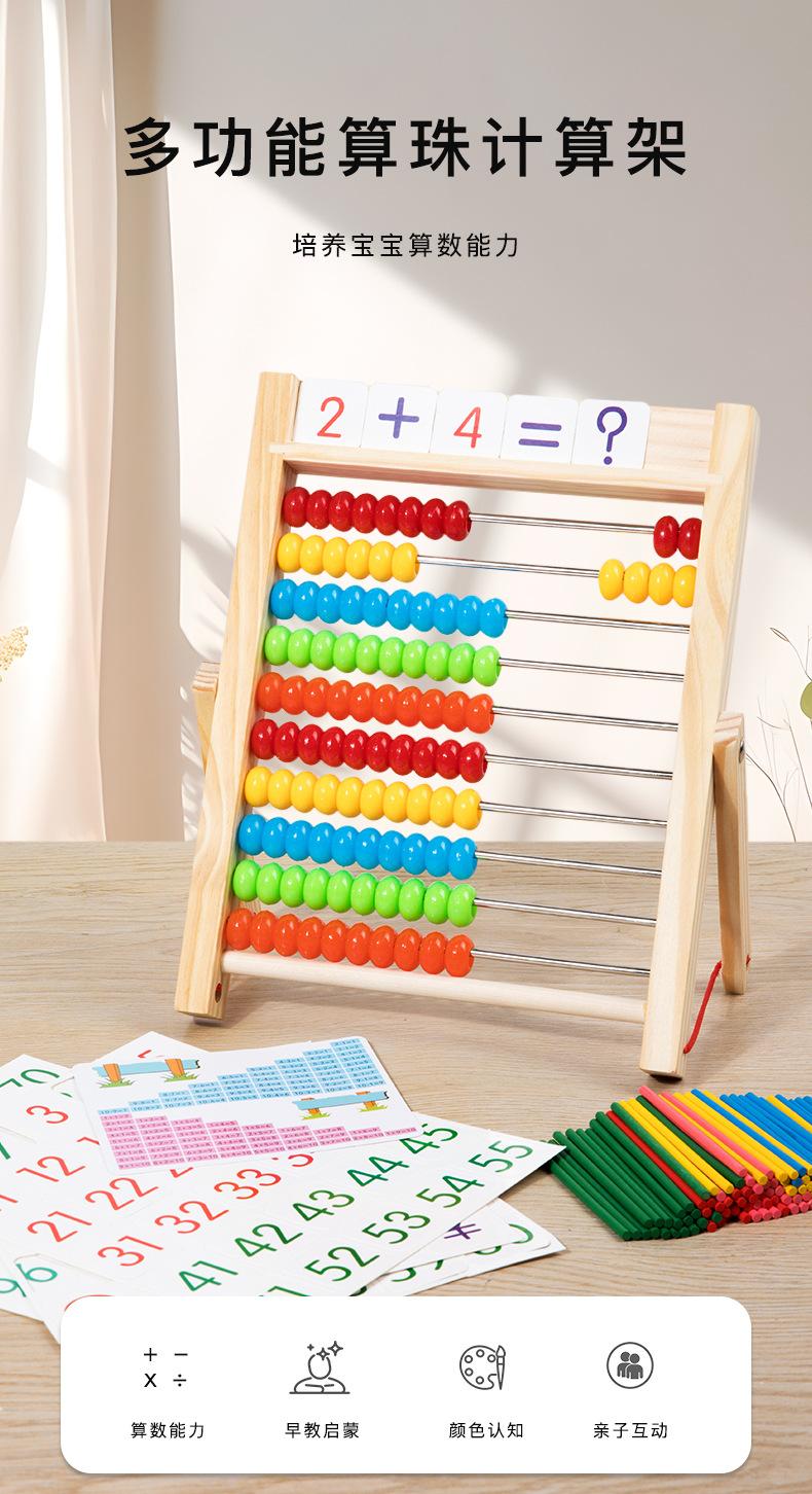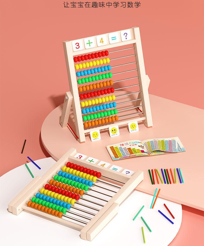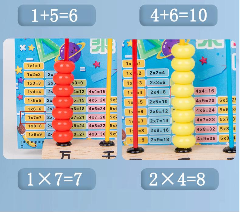 Nombre del producto: Ábaco Multifuncional de Alta Calidad de 10 FilasCuentas acrílicasIncluye (110 tarjetas numéricas para suma, resta, multiplicación, división, etc. + 100 palitos para contar + tabla de multiplicar) (CE/CPC)