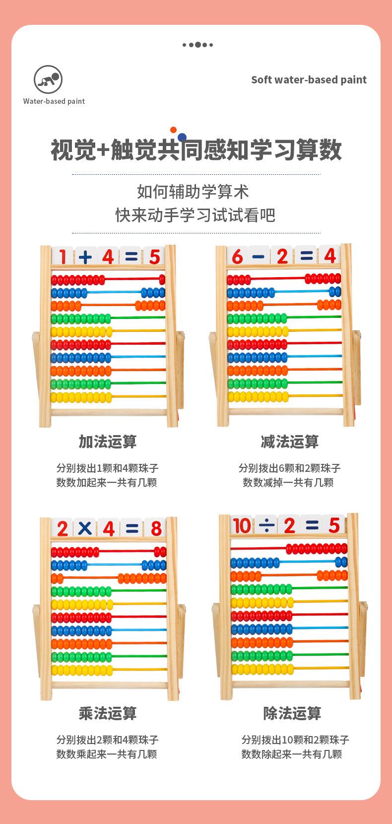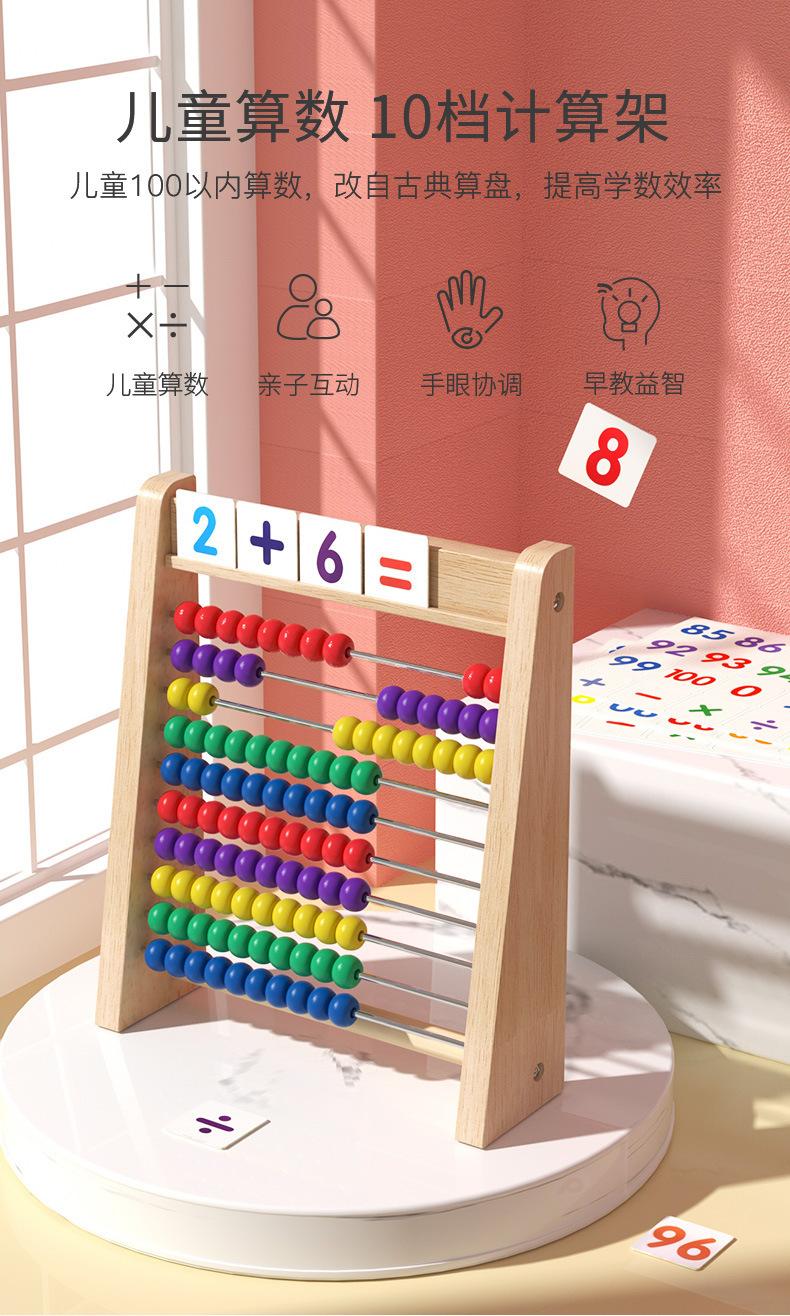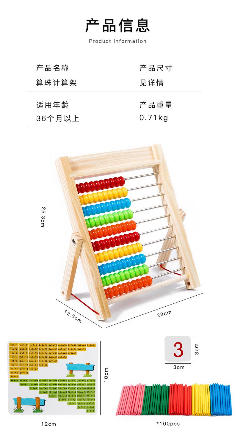 Nombre del producto: Soporte de cálculo multifuncional de 10 niveles (cuentas de madera) incluyendo (110 adición digital, resta, multiplicación, división, etc. + 100 palitos de conteo + tabla de fórmulas) (CE/CPC)