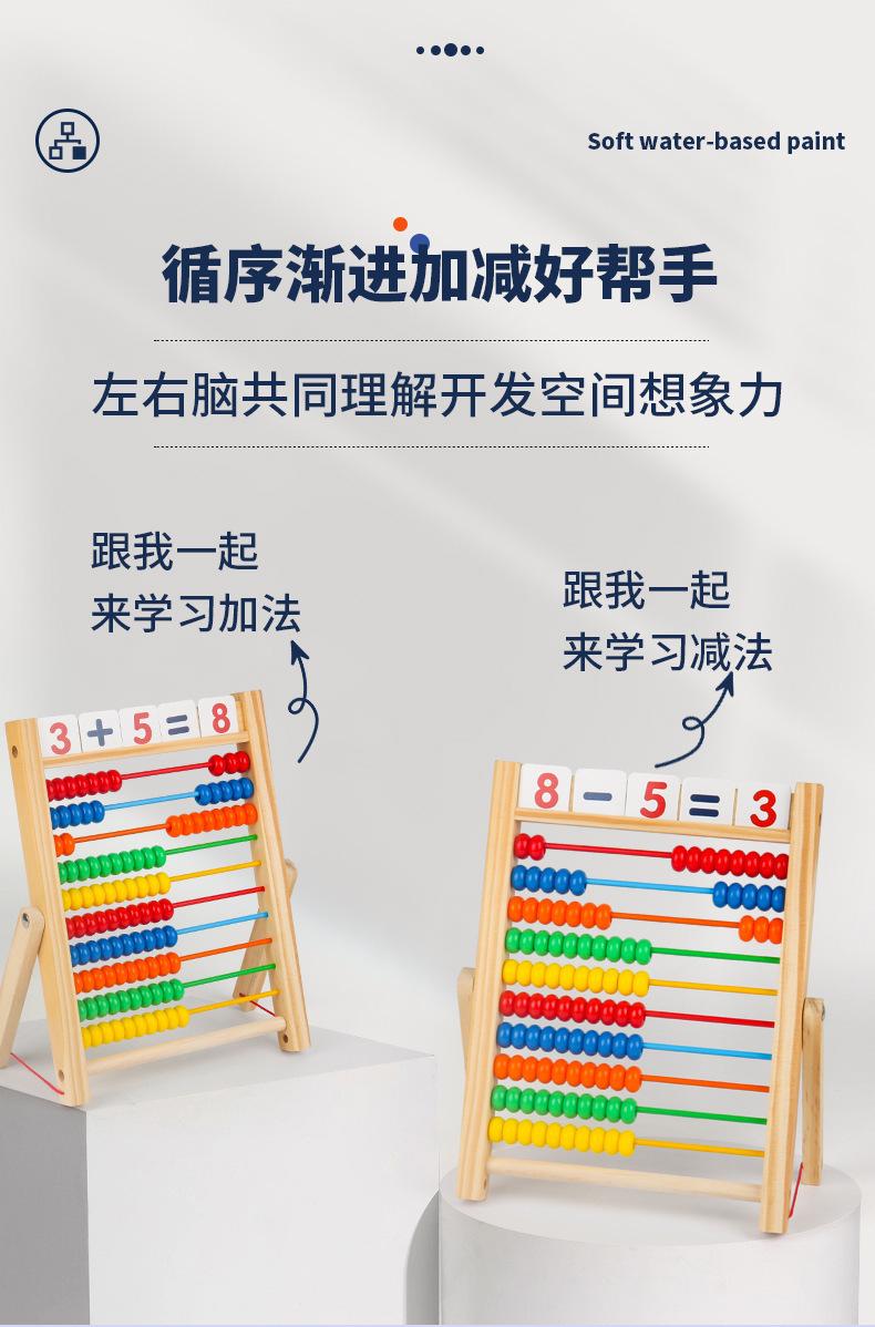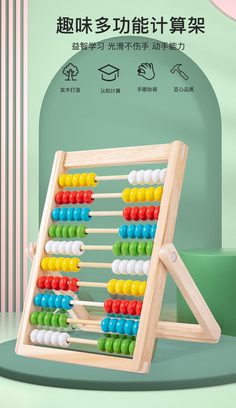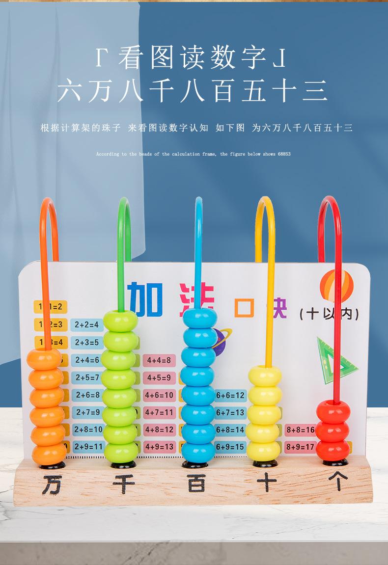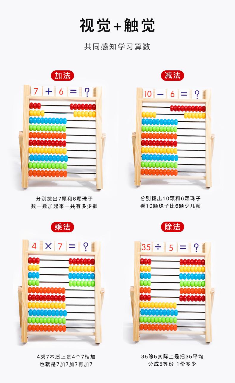 Nombre del producto: Soporte de cálculo multifuncional de 10 niveles (cuentas de madera) incluyendo (110 adición digital, resta, multiplicación, división, etc. + 100 palitos de conteo + tabla de fórmulas) (CE/CPC)