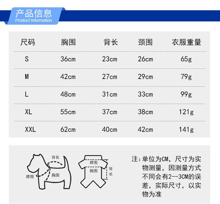 Nuestra fábrica es un fabricante de ropa para mascotas. Podemos aceptar procesamiento OEM, procesamiento de muestras, procesamiento de dibujos, procesamiento de muestras, diseño ODM. Nuestra fábrica es una fábrica de ropa con más de 10 años de producción profesional de ropa para mascotas. Integramos producción, diseño y ventas. Aceptamos pedidos personalizados de diversas prendas para mascotas durante todo el año. Tenemos una cooperación a largo plazo con los principales comerciantes de comercio exterior para personalizar ropa para mascotas de comercio exterior. Al mismo tiempo, también cooperamos con las principales plataformas de comercio electrónico nacionales. Podemos enviar y vender al por mayor. La ropa para mascotas es un producto especial. No admitimos devoluciones ni cambios a menos que haya problemas de calidad. Por favor, comprenda. Después de todo, algunos perros inevitablemente tendrán enfermedades de la piel, eccemas y otras enfermedades similares, que serán graves si se transmiten a otros perros. La ropa para mascotas en nuestra fábrica es completamente nueva y no hay devoluciones ni cambios secundarios. Tenga la seguridad de comprar ropa que haya sido usada por otros perros. Haremos todo lo posible para proteger la salud de su mascota y esperamos volver a colaborar con usted.