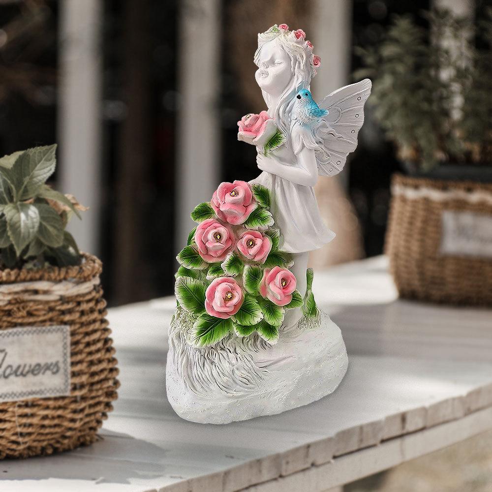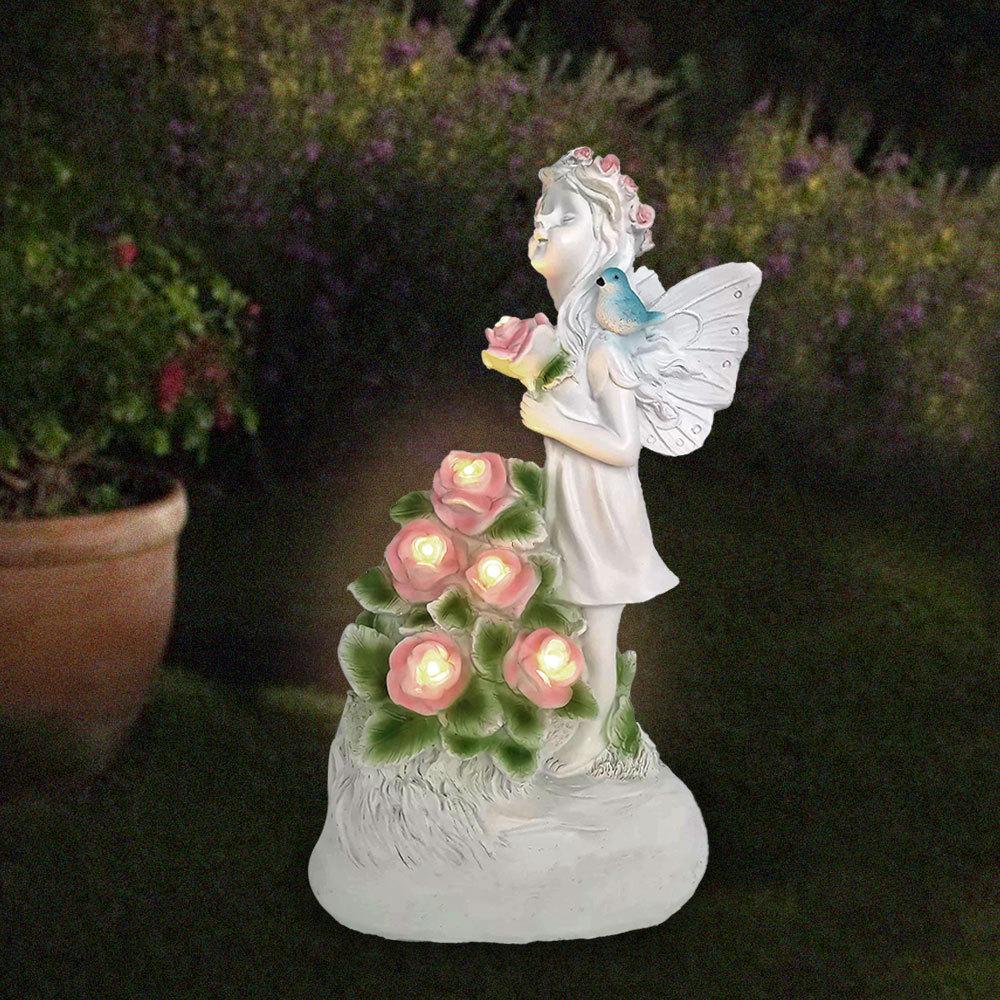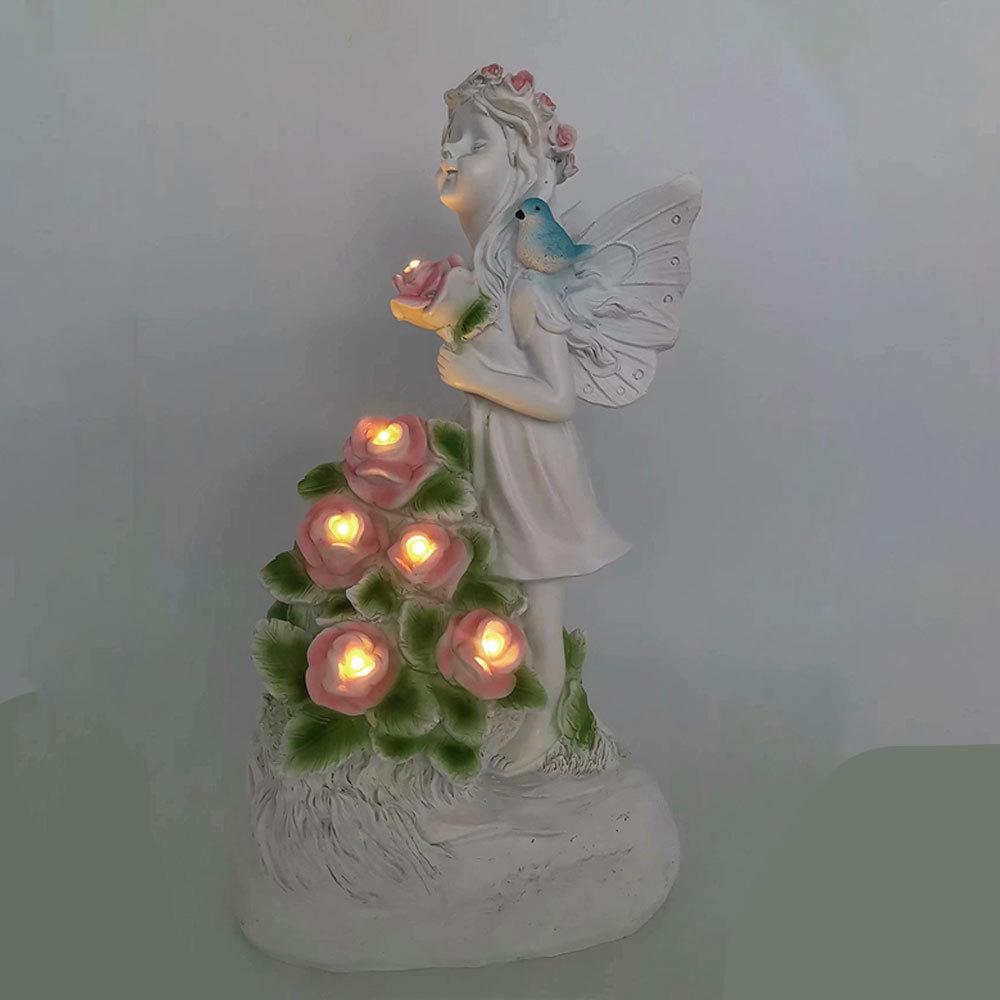 Lámpara de noche con forma de hada de flores solar de estilo pastoral americano, artesanía de resina solar, decoración para jardín, patio y villa