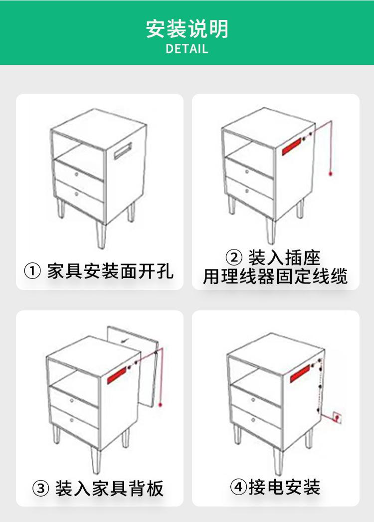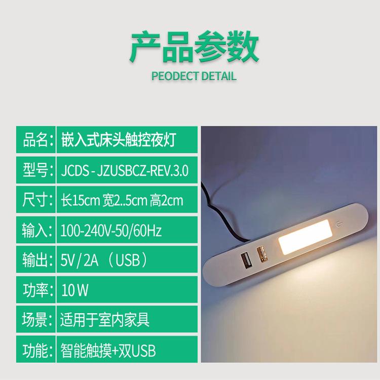 Interruptor de faro integrado, luz LED, mesita de noche, mueble, carga USB, enchufe inteligente tipo C oculto
