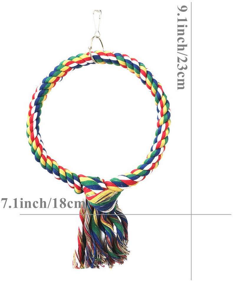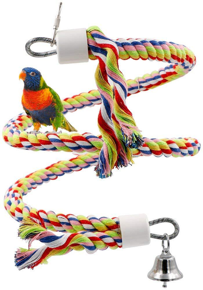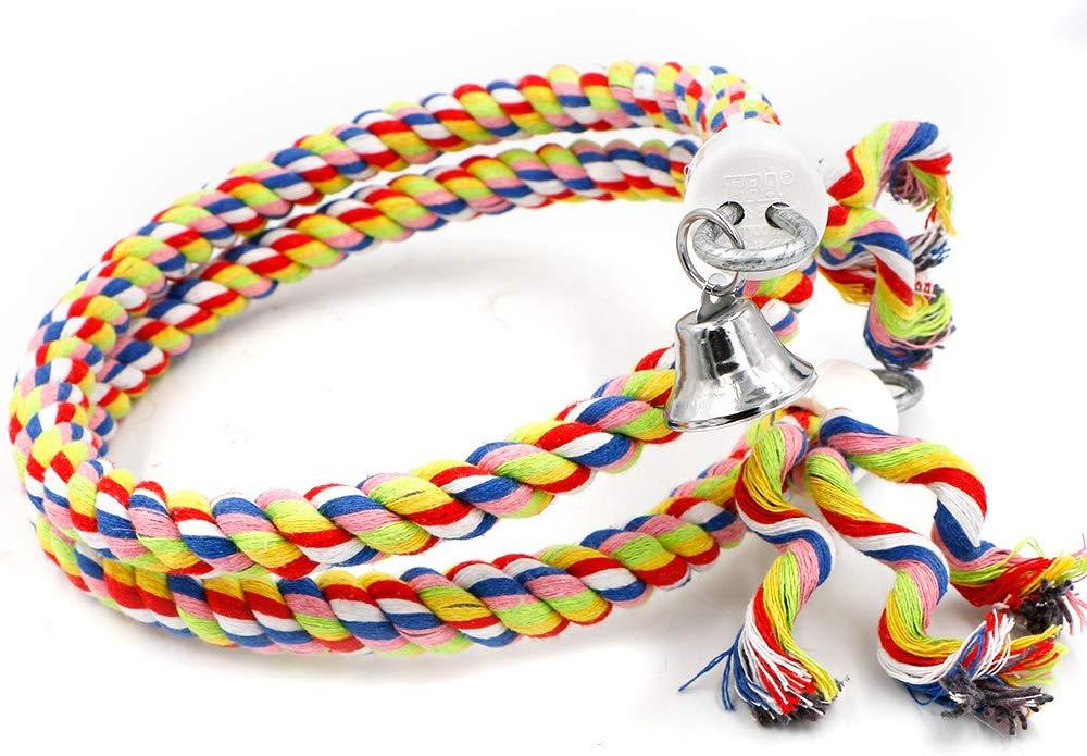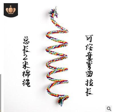 Este producto es una cuerda de juguete para loros. Está hecho de alambre de acero inoxidable y recubierto con una capa de cuerda de algodón fuerte y duradera. La cuerda colorida se utiliza para atraer a los loros y es saludable para que los loros la mastiquen. Esta cuerda también es muy flexible, se puede enderezar o enrollar en cualquier forma para permitir que tu loro suba y baje. Hay una pequeña campana que puede producir música nítida para que el loro juegue más felizmente. Este es un buen juguete para tu loro, así que ¿qué estás esperando? No pierdas una oportunidad tan buena.
