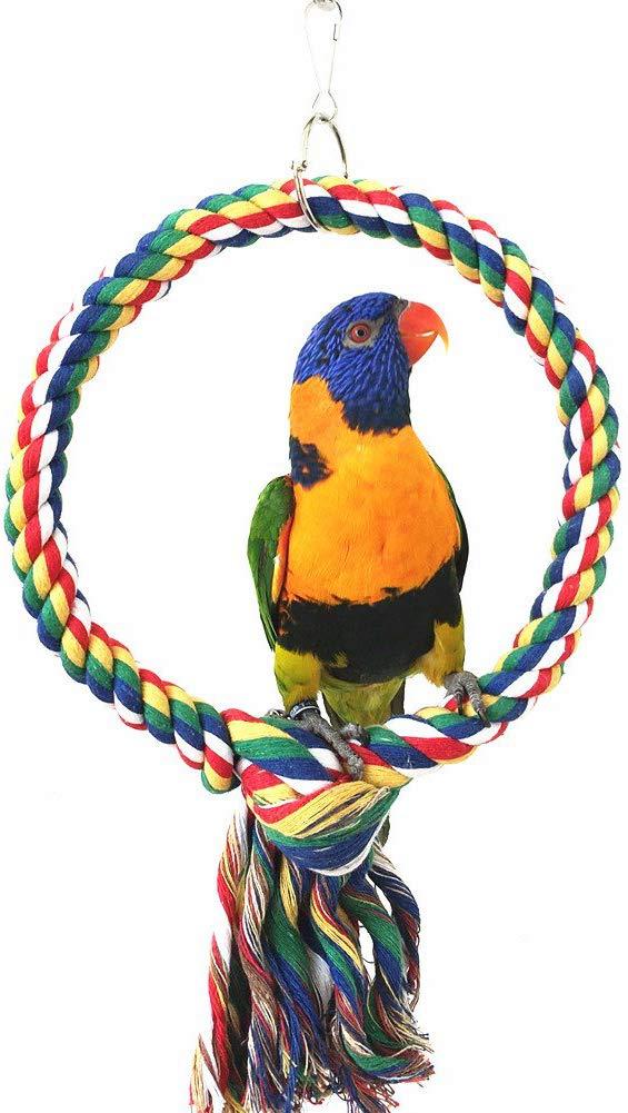 Hay un diseño de gancho en la parte superior que se puede colocar en cualquier posición y el loro puede columpiarse en él.