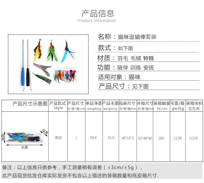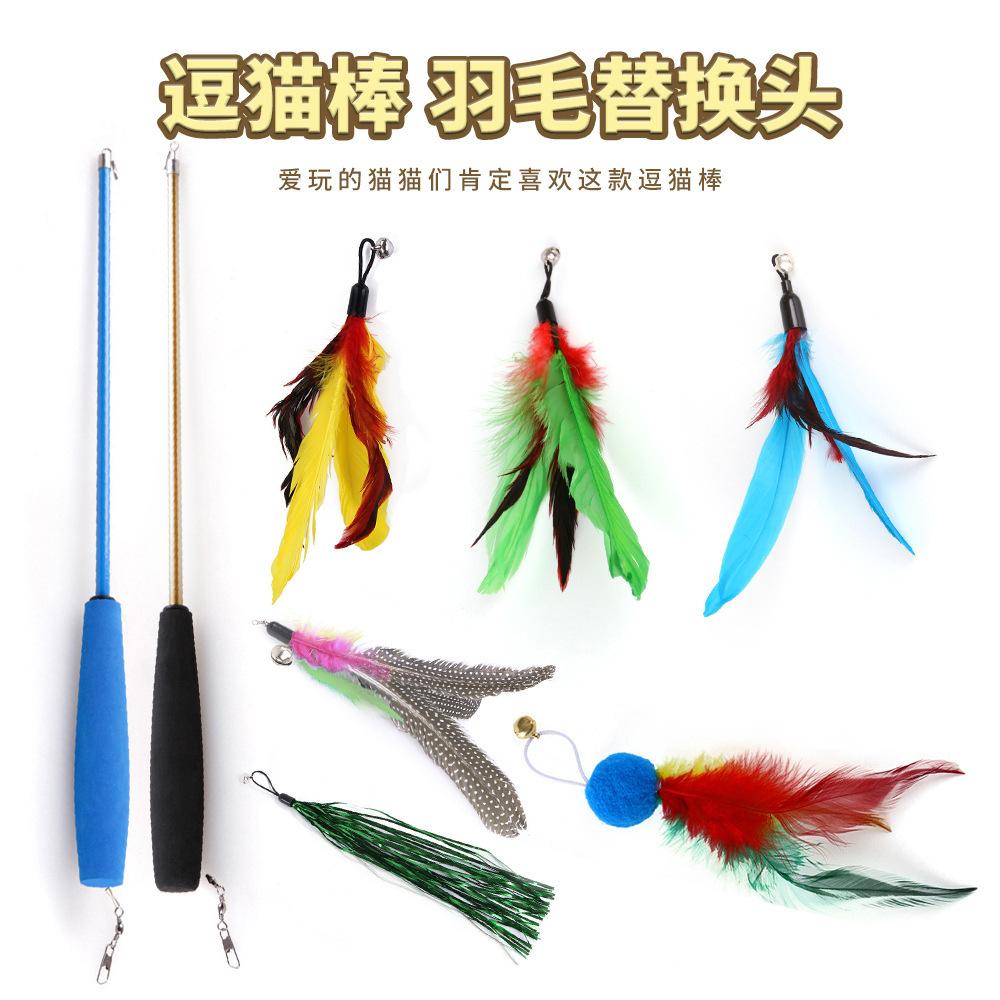 Juego de juguetes para gatos transfronterizos, palo para gatos, campana de plumas, cabezal de repuesto para aliviar el aburrimiento, fabricantes de suministros de juguetes