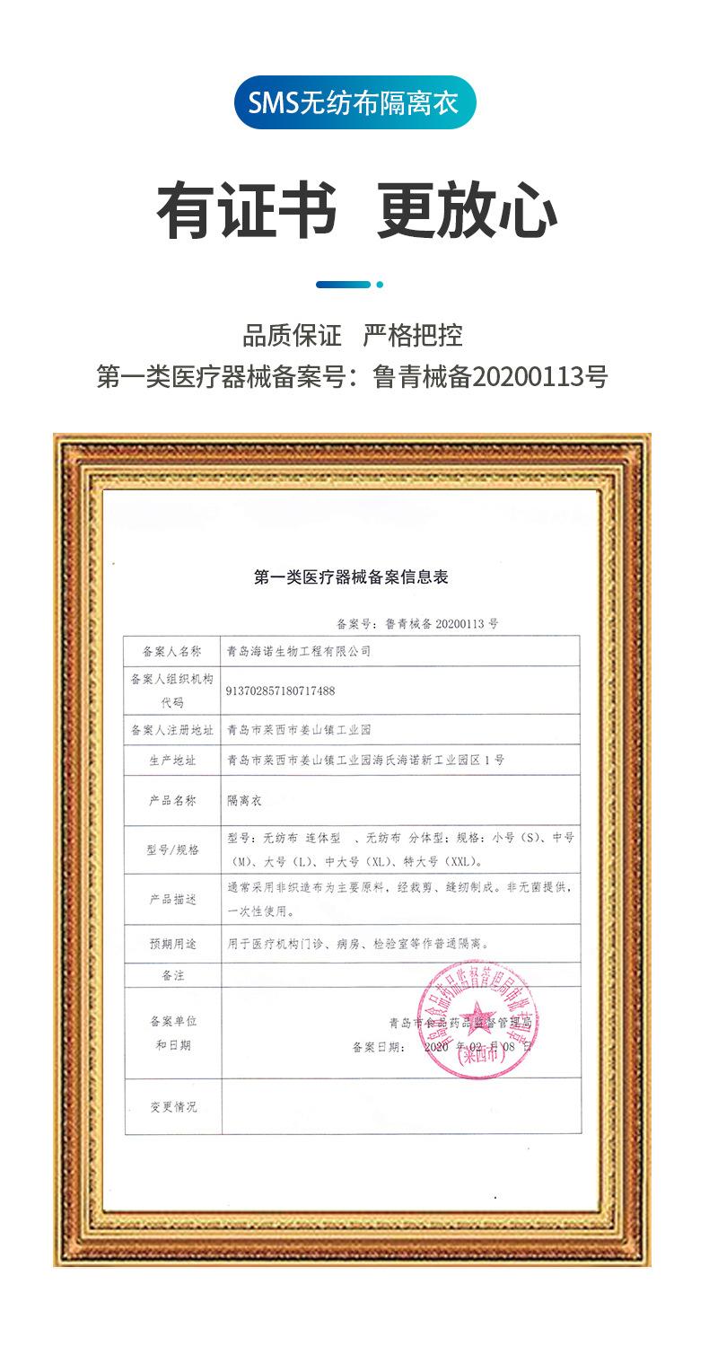 Ropa de aislamiento Haishi Hainuo, tiras de goma, capucha de una pieza, ropa de aislamiento desechable de cuerpo completo, ropa de trabajo protectora antiespumante