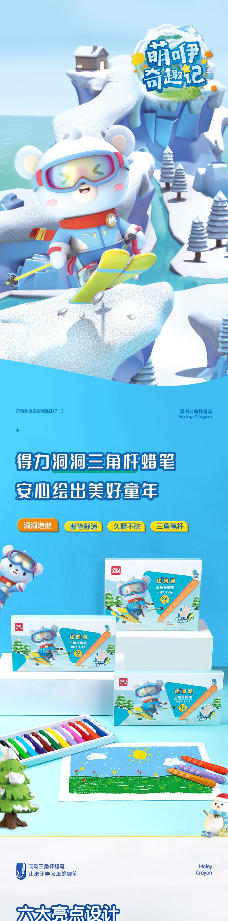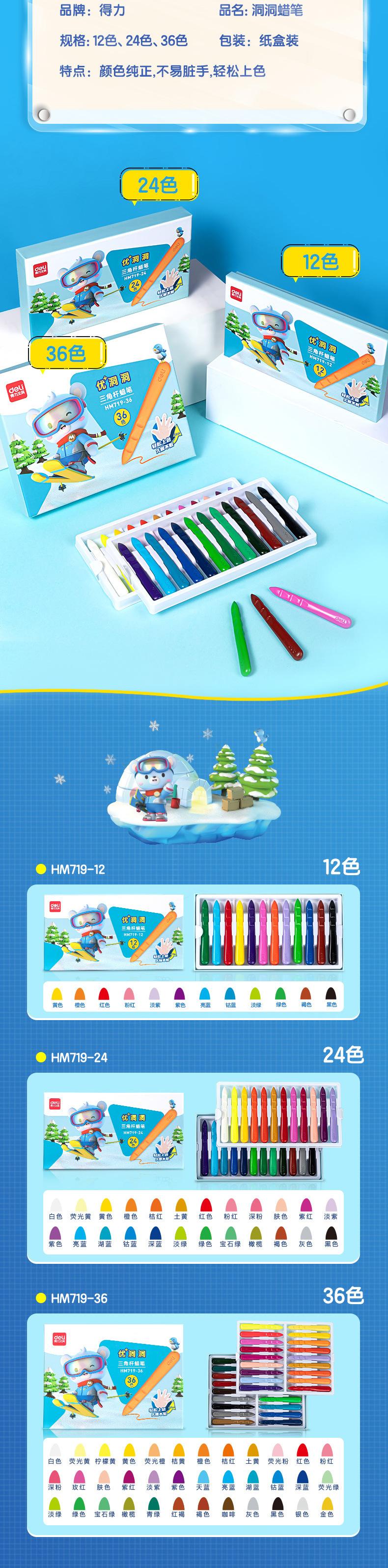 Deli HM719 lindo esquí excelente + agujero triángulo crayón en barra para pintura al óleo para niños pintura artística barra colorida