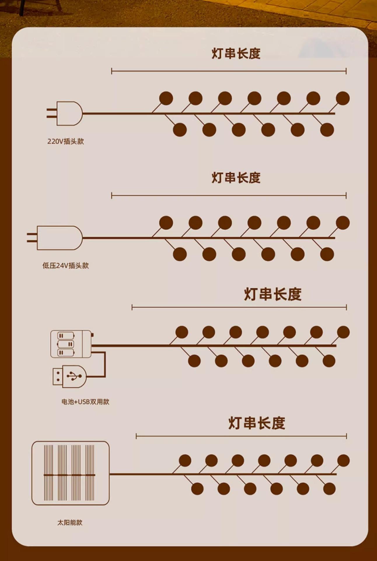 Plug-in model: 5 m 20 lamp with tail plug, Plug-in model: 5 m 20 lamp male and female connection, Plug-in mode...