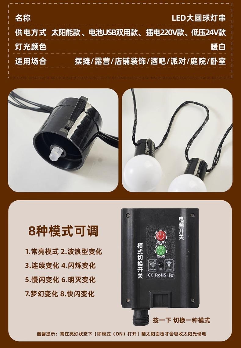 Compra Luz de ambiente para acampar al aire libre, luz de bola grande, cadena de luces LED con dosel, luces decorativas para tienda de campaña, batería de camping USB al por mayor en Joom.pro