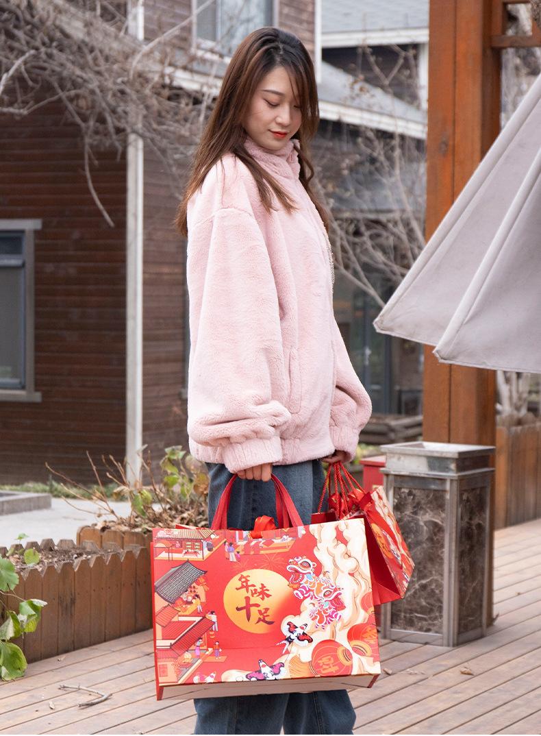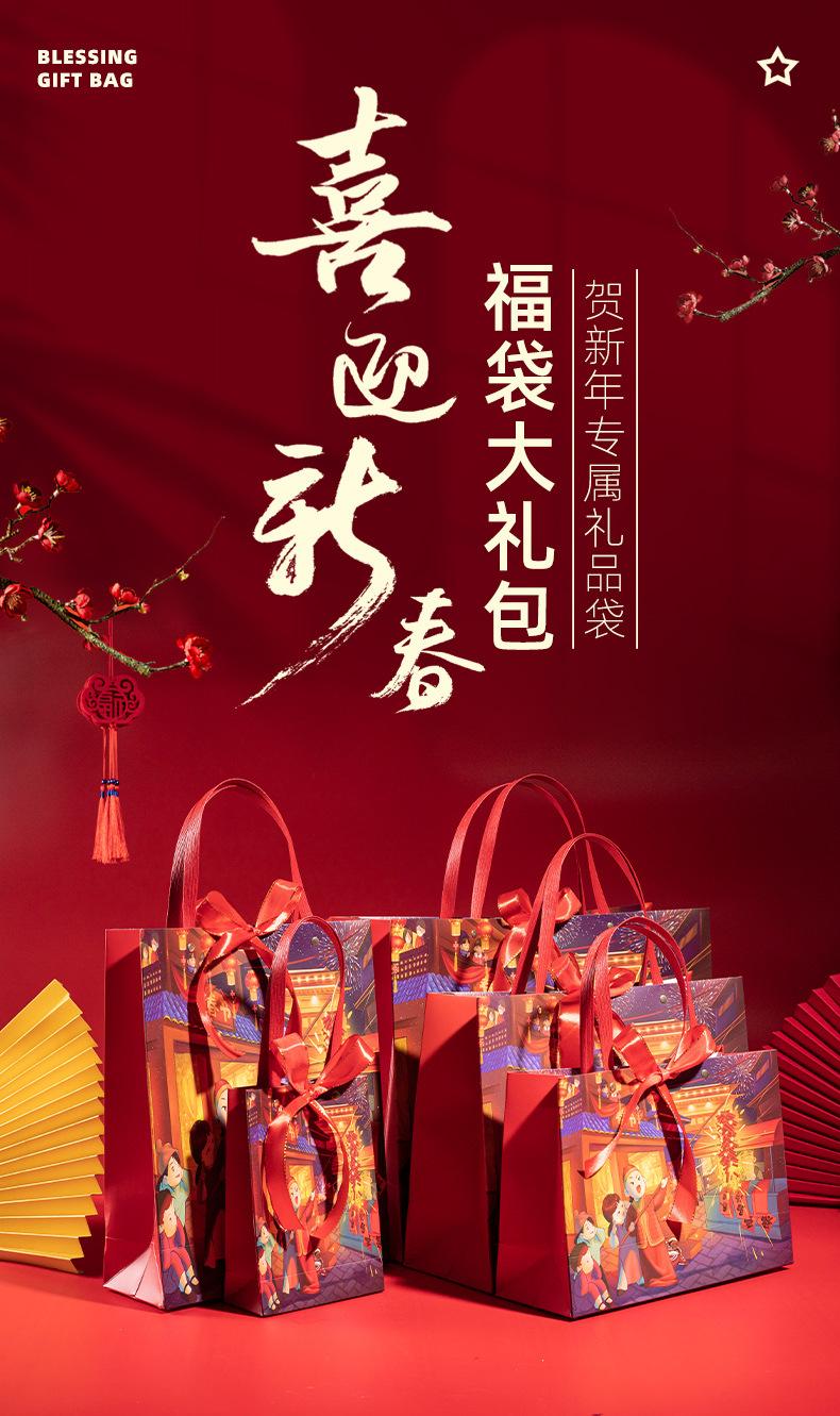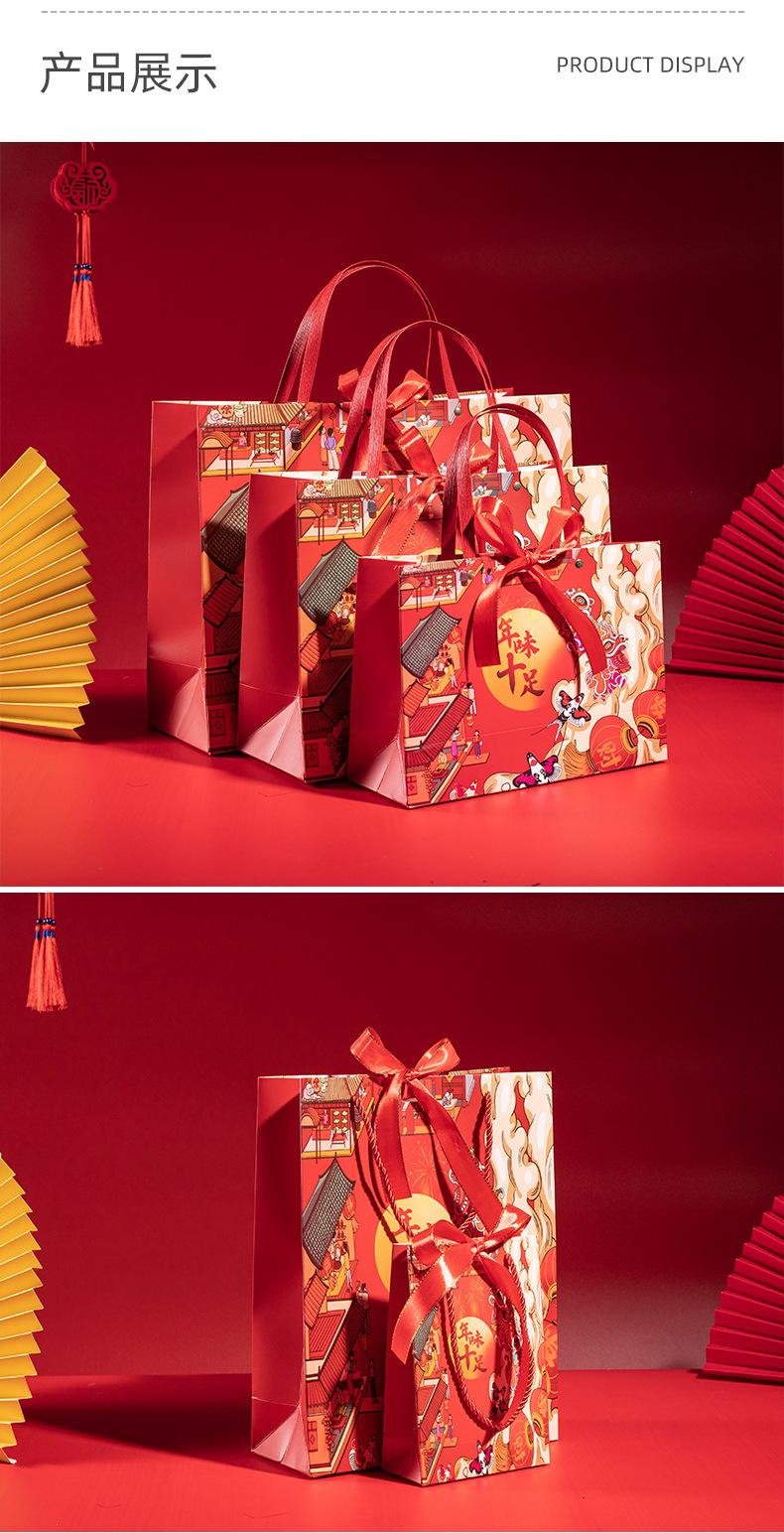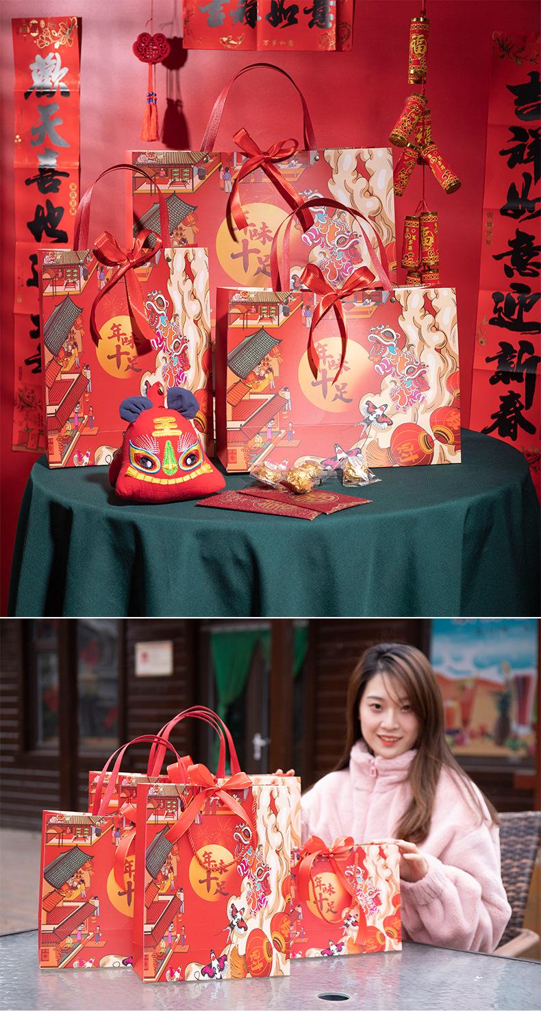 Bolsa de Regalo de Año Nuevo Bolso de Mano Festival de Primavera Regalo de Año Nuevo Bolsa de Papel Festiva Roja Bolsa para Reunión Anual de la Empresa