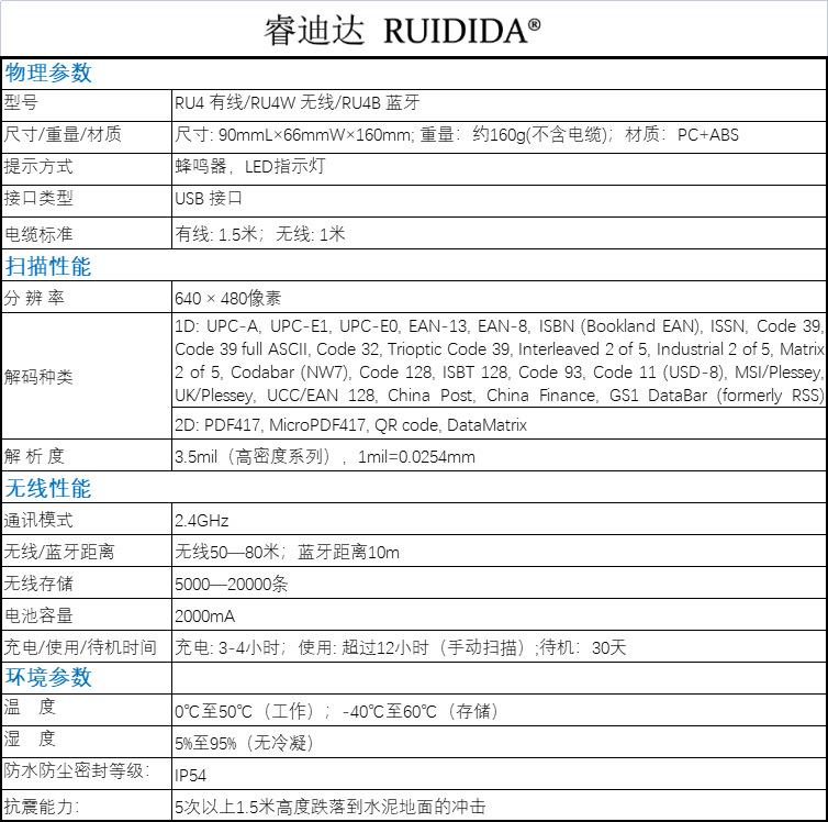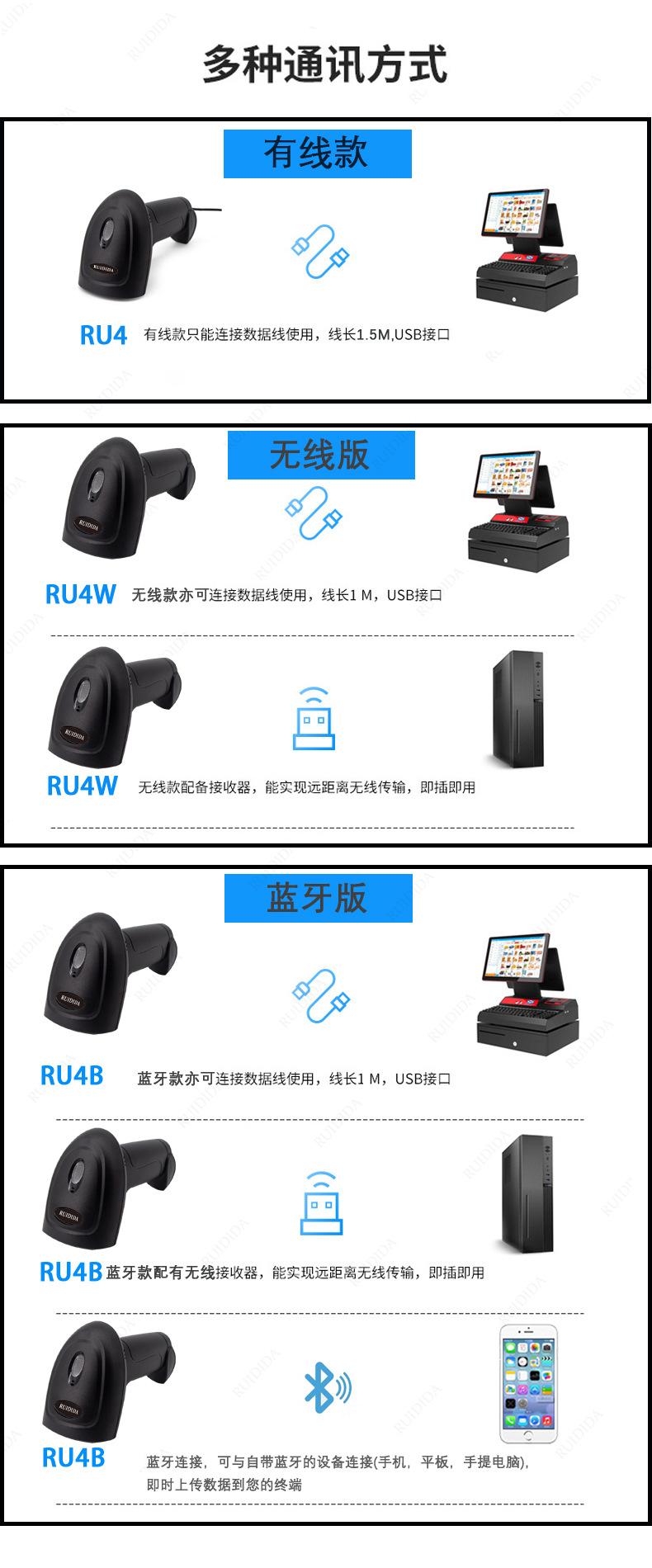 Pistola de escaneo de código portátil con cable bidimensional unidimensional Ruidida, máquina de escaneo de código inalámbrico, pistola de escaneo de código de barras de súper logística