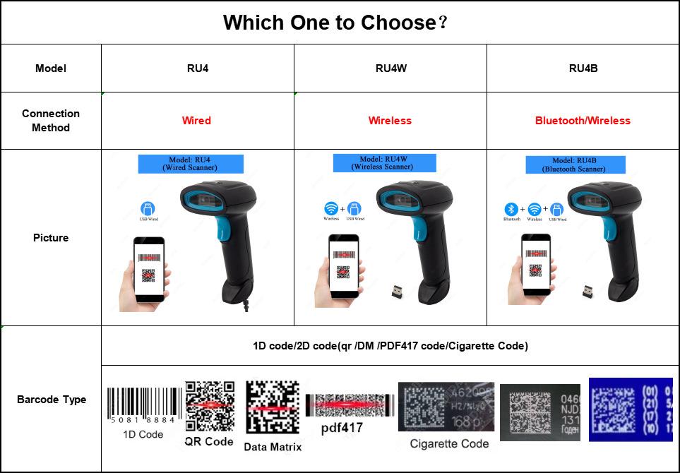 Ru4 one-dimensional two-dimensional-wired, Ru4w one-dimensional 2d-wireless, Ru4b one-dimensional two-dimensio...