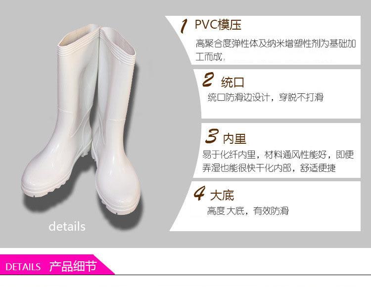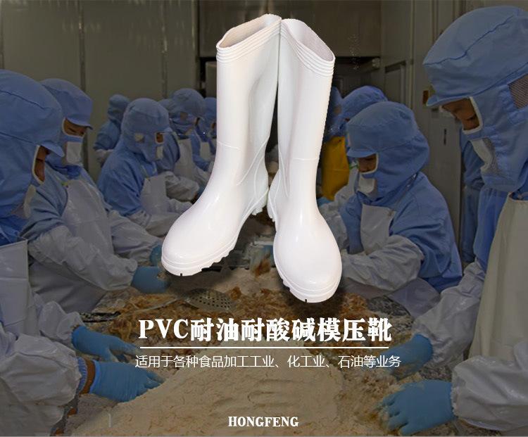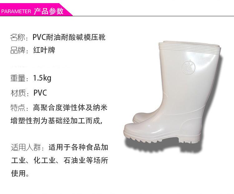 Botas blancas de PVC marca Red Leaf para alimentos, botas de protección laboral, botas de lluvia moldeadas químicamente, botas de lluvia antideslizantes