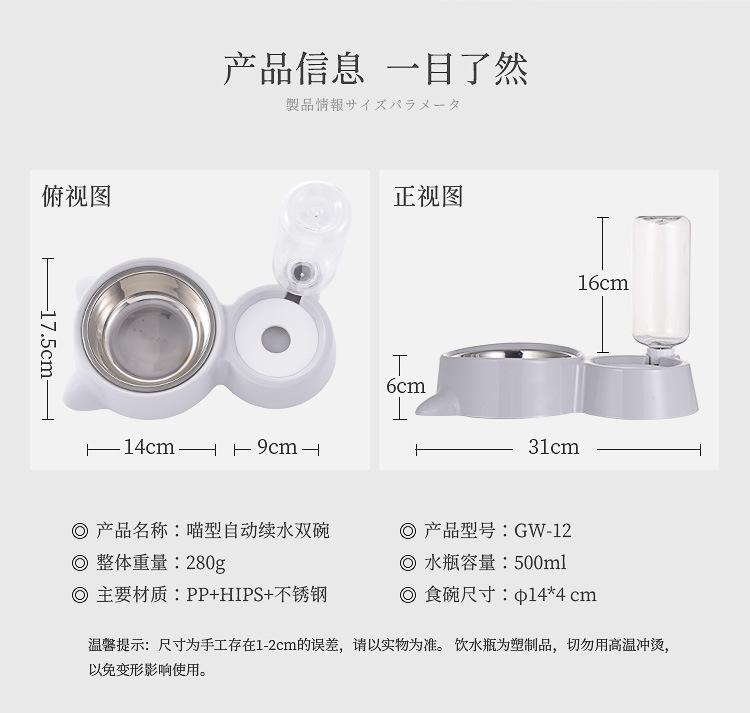 Fuente de agua para mascotas, comedero automático de doble tazón con cabezal para gato, bebedero para perros, dispensador de agua para gatos, cuenco de comida para cachorros