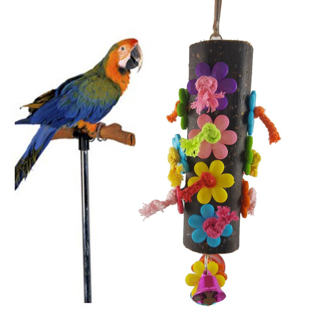Juguete de madera maciza para morder loros, juguete para moler boca, columna de flores, venta al por mayor