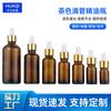 En stock, botella de aceite esencial de 10 ml, botella de aceite esencial marrón, subenvase de esencia líquida, gotero, tapa de cabezal grande, botella de vidrio