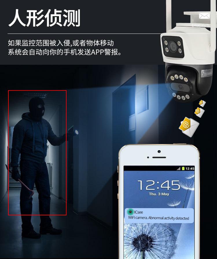 Cámara de red WIFI inalámbrica de doble lente y doble imagen, aspecto super, icsee, bola giratoria para exteriores