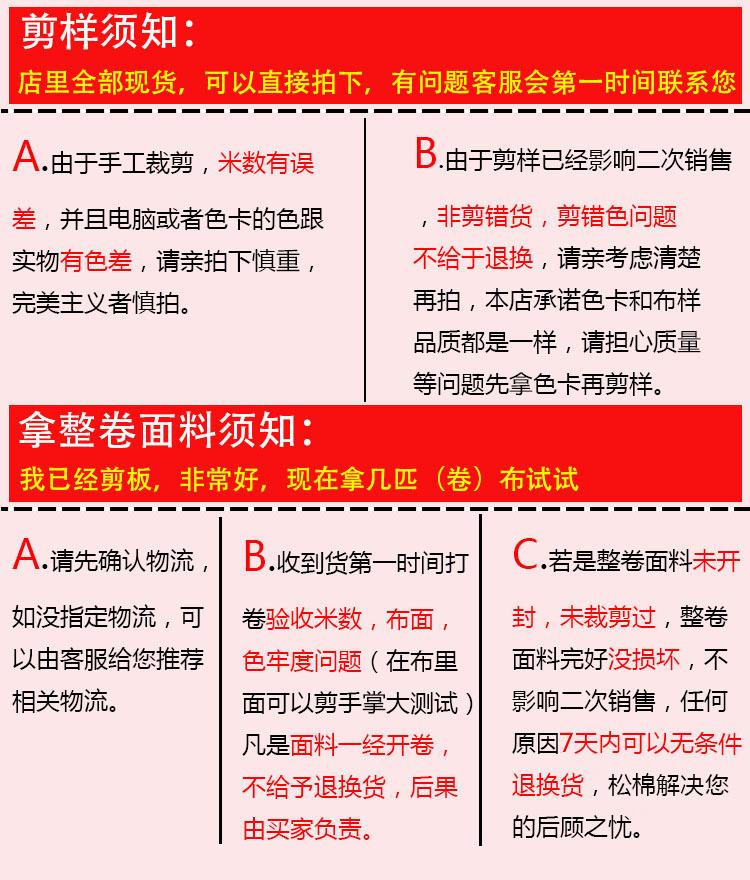 1. Los cortes sueltos no admiten devoluciones ni cambios (ej: un rollo de 100 metros de tela solo cuesta un metro o menos)
