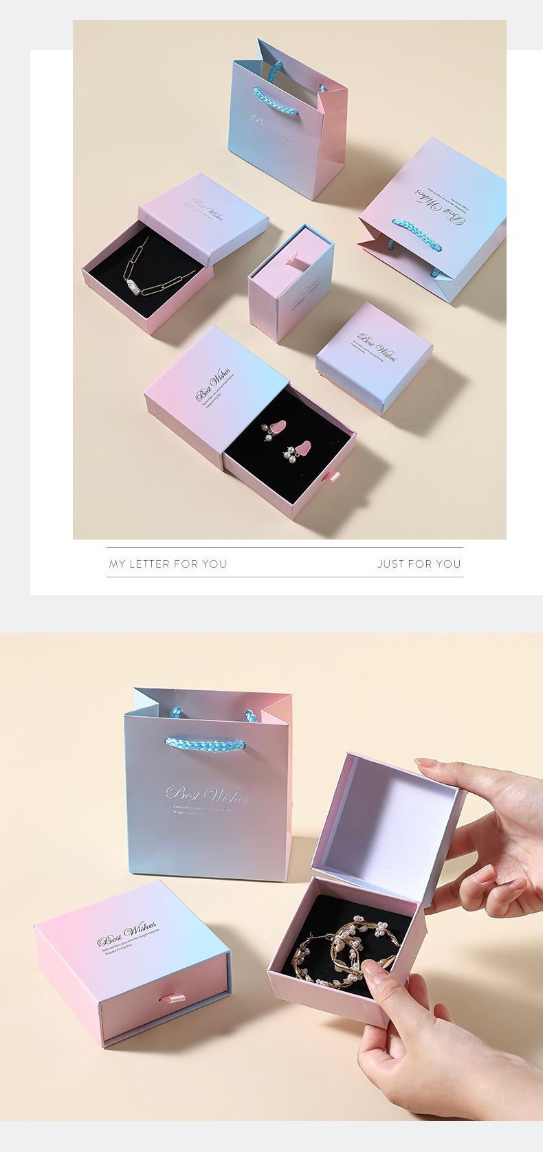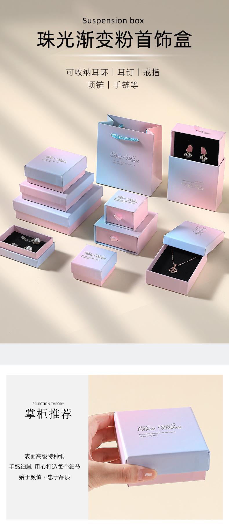 Caja de Almacenamiento de Joyas con Degradado Perlado, Tapa de Papel Especial, Caja para Anillos y Aretes, Caja Extraíble, Caja de Embalaje para Joyas al Por Mayor
