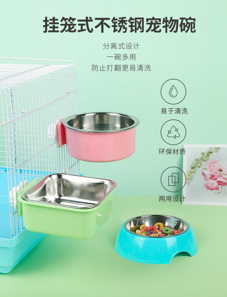 Xingxingwen acero inoxidable colgante Tazón para Mascotas conejo Chinchilla cobayo fijo antivuelco 2 y 1 caja de comida