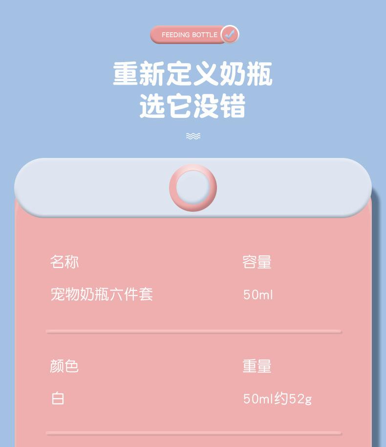 6-piece feeding bottle 50ml White nipple white cover, 6-piece feeding bottle 50ml yellow nipple white cover