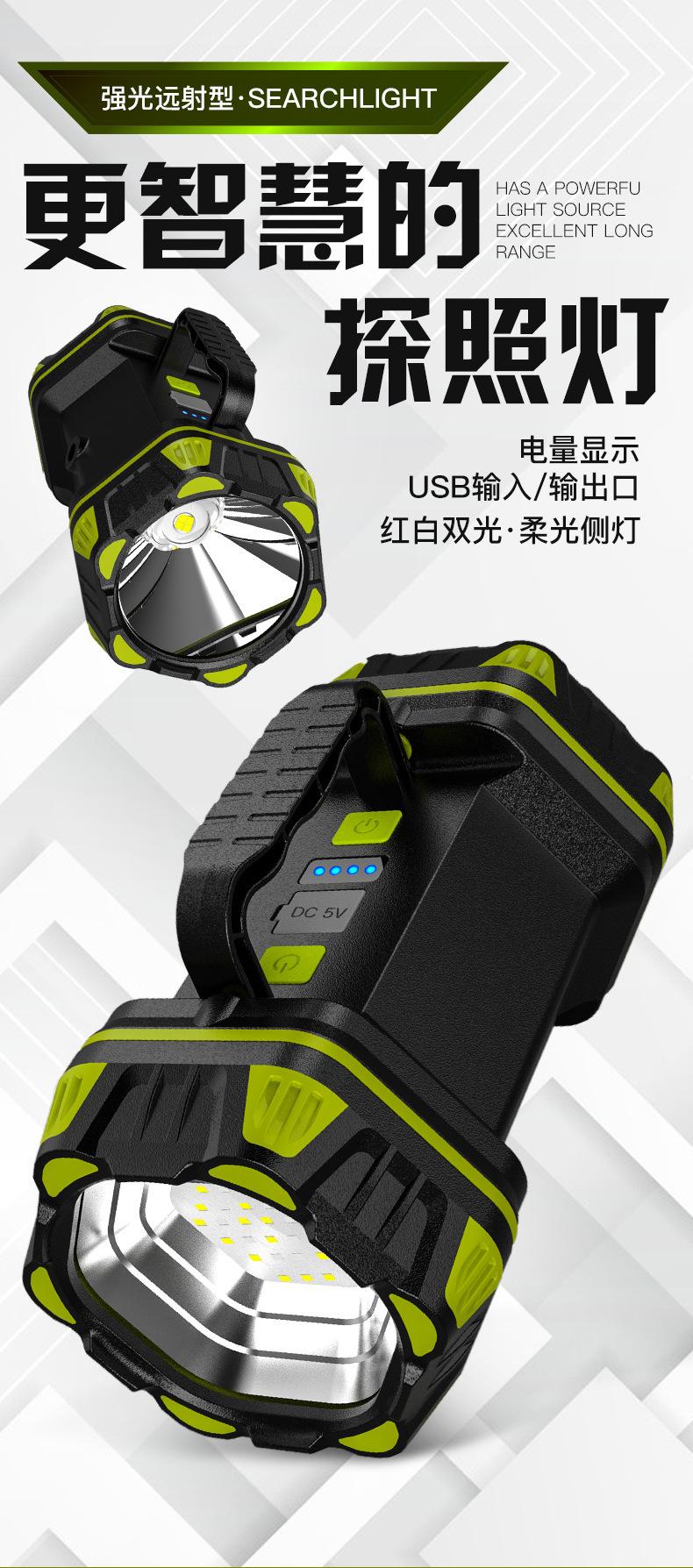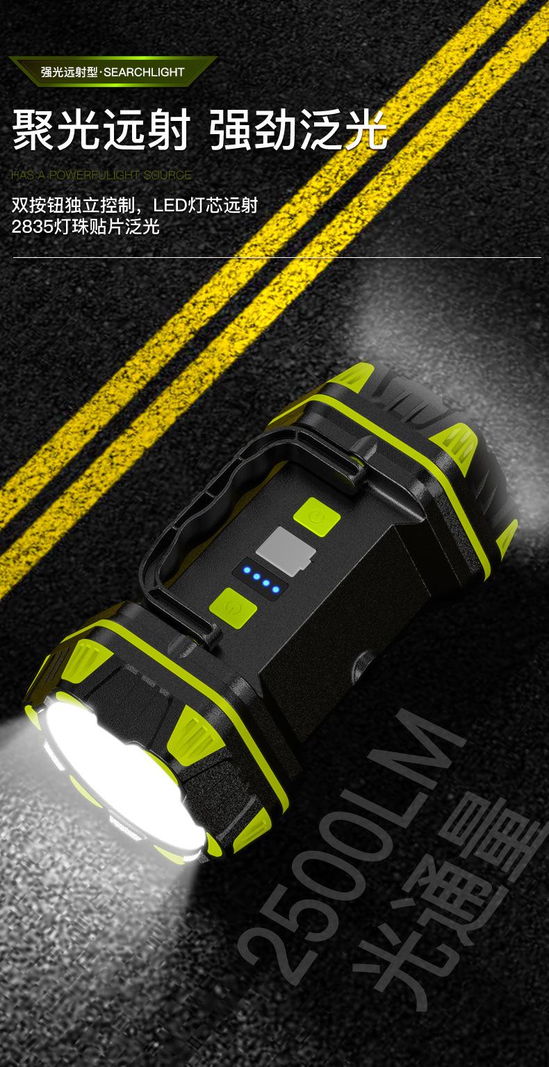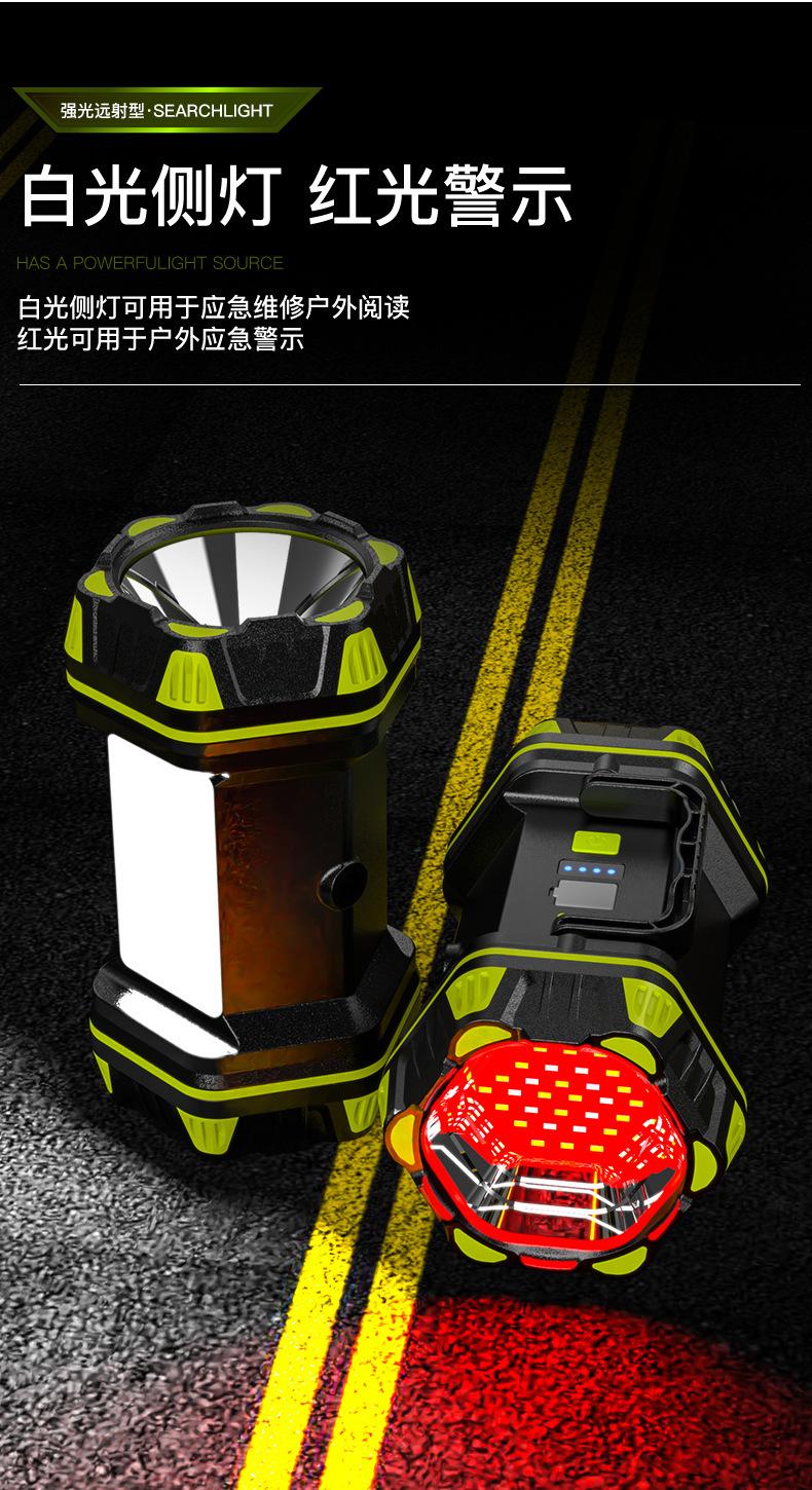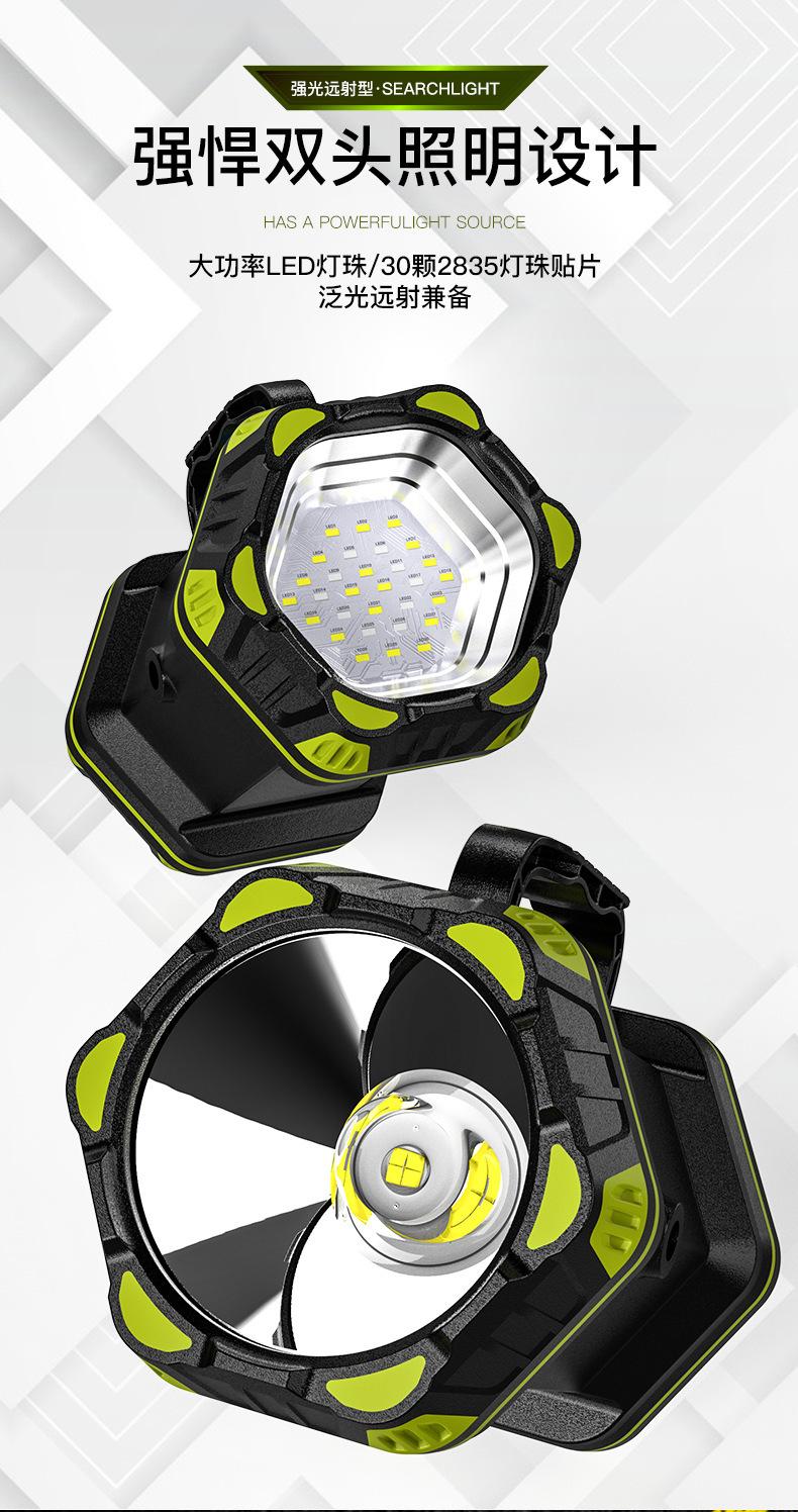 Nuevo reflector LED transfronterizo, recargable por USB, para exteriores, impermeable, multifunción, advertencia roja, doble cabezal, luz de camping portátil