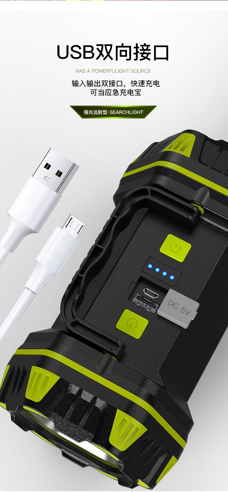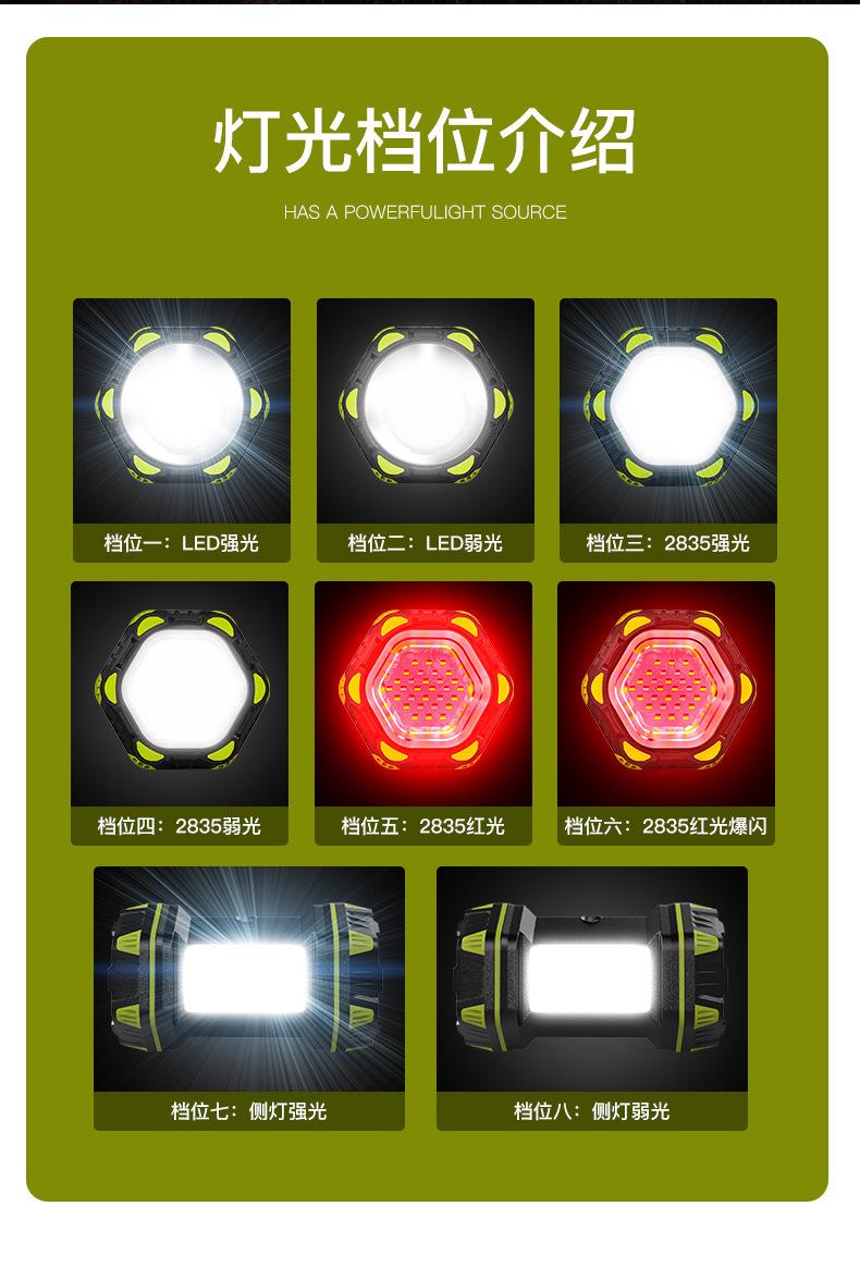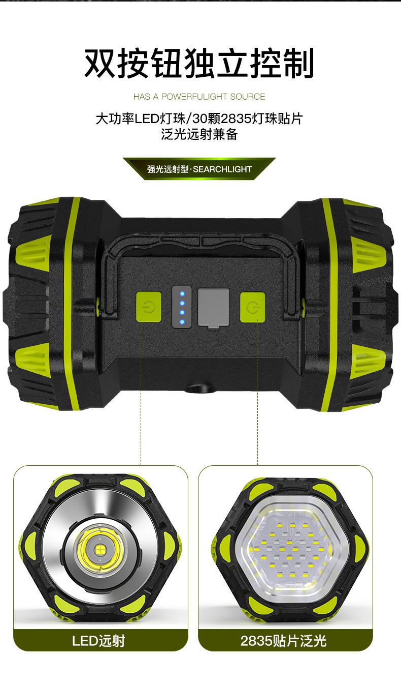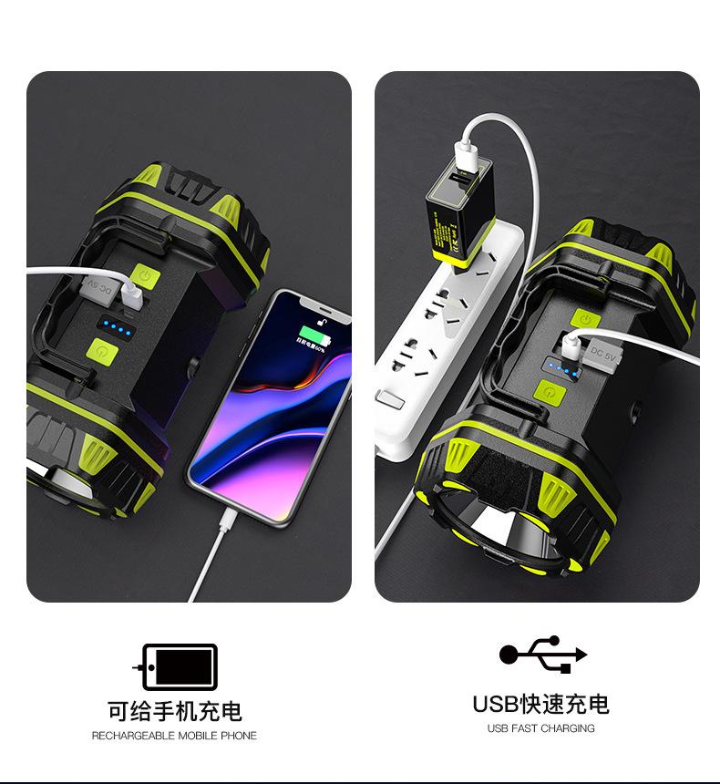 Nuevo reflector LED transfronterizo, recargable por USB, para exteriores, impermeable, multifunción, advertencia roja, doble cabezal, luz de camping portátil