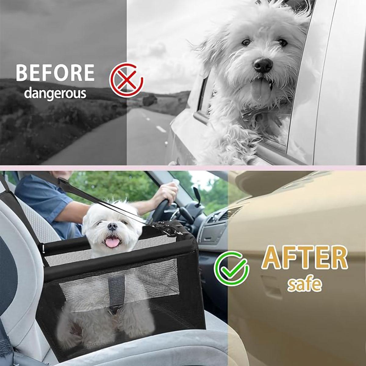 Diseño de bolsillo con cremallera para guardar objetos pequeños El tapete contiene una correa de seguridad que se puede abrochar al collar o arnés de pecho del perro para evitar que las mascotas corran por el coche. ¡Es seguro y humano, y un gran producto para dueños de mascotas en casa y en la carretera!