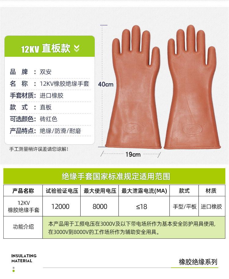 Guantes aislantes Shuangan 12KV para trabajos en vivo, resistentes a alto voltaje, eléctricos de goma, anti-electricidad, protección laboral, guantes de goma
