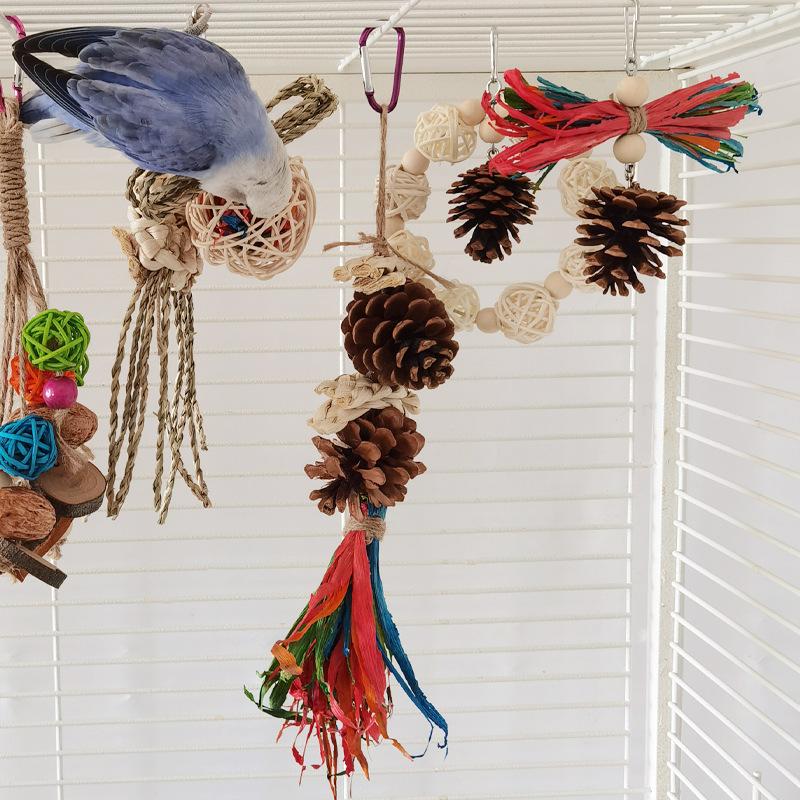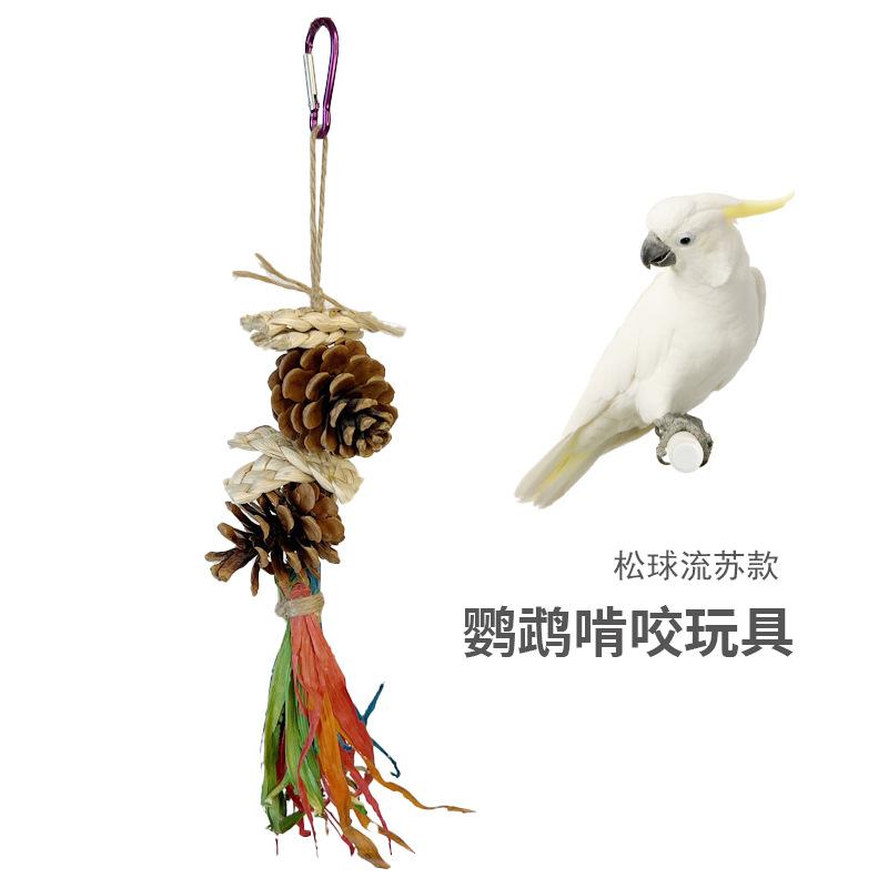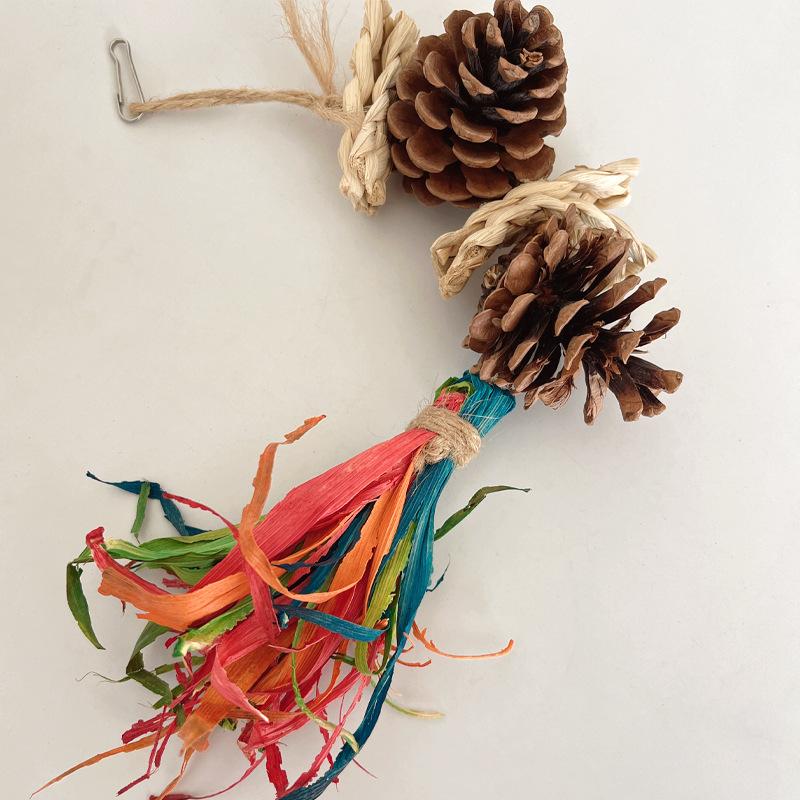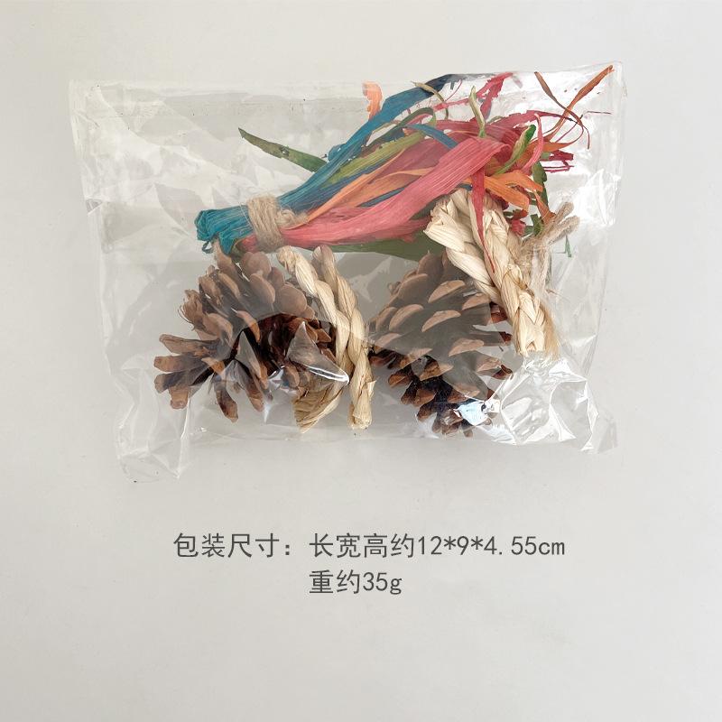 Juguete para pájaros, cuerda para morder de piñones naturales, peonía Xuanfeng, juguete para loros, hojas de maíz coloridas, decoración paisajística, suministros para loros