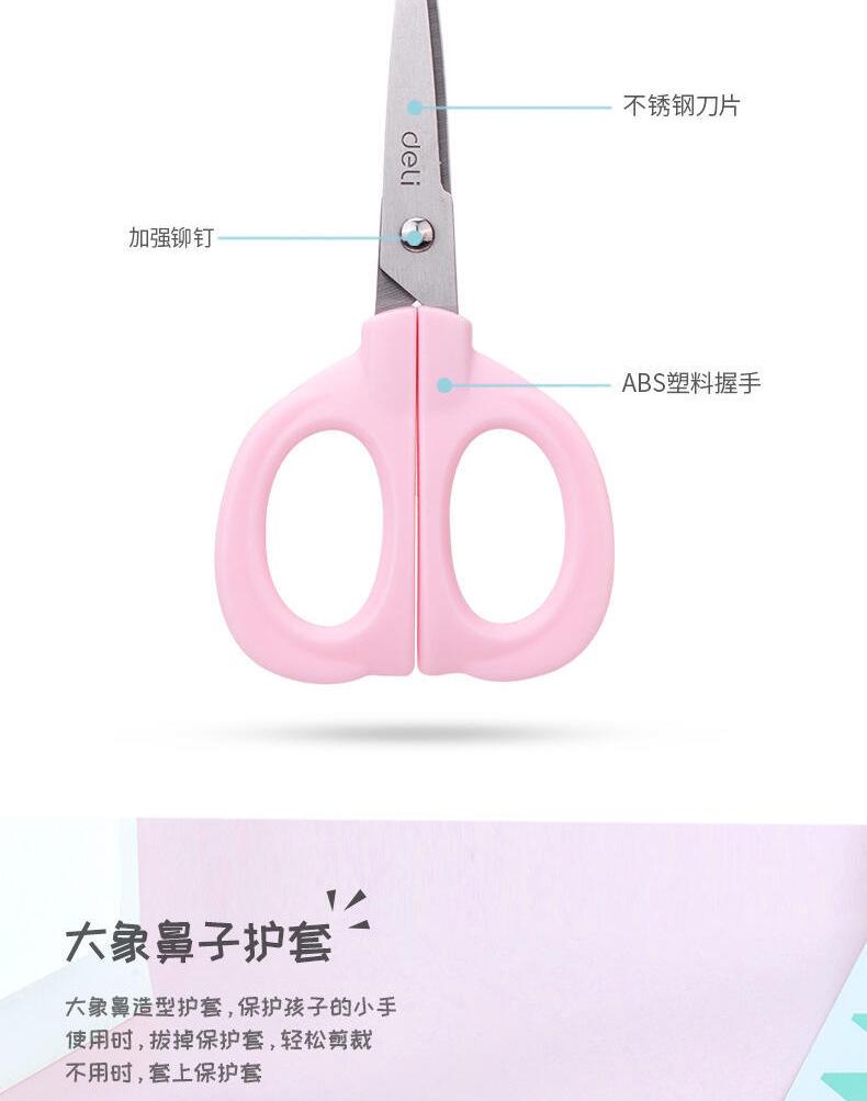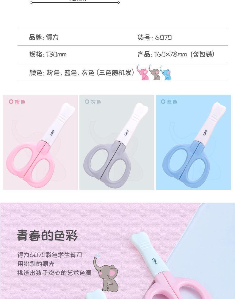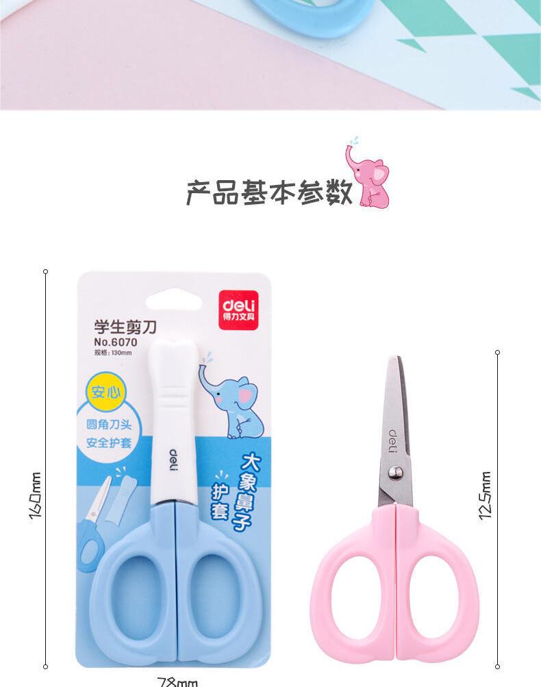 Venta al por mayor Deli 6070 tijeras de seguridad con cabeza de cuchillo redondeada, cortador de papel para niños cortado a mano, funda de plástico, tijeras para estudiantes