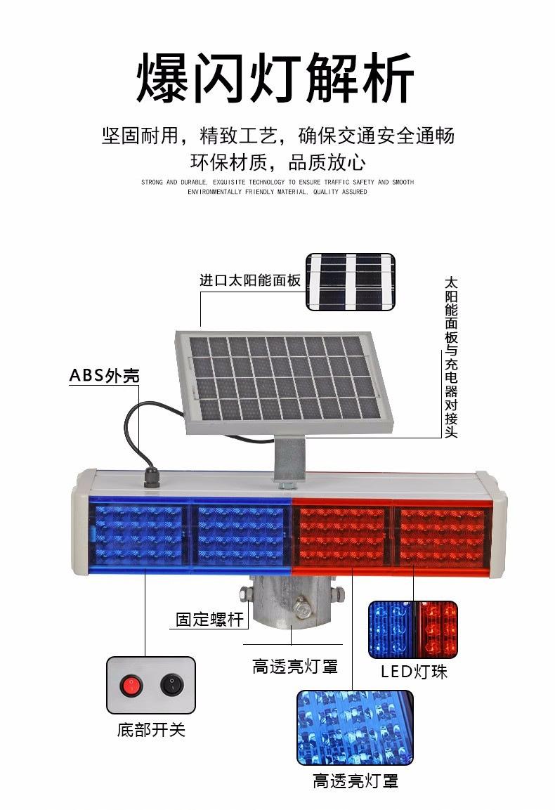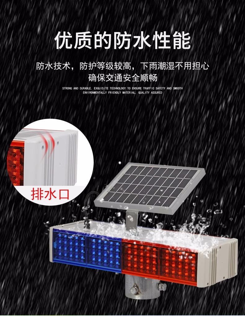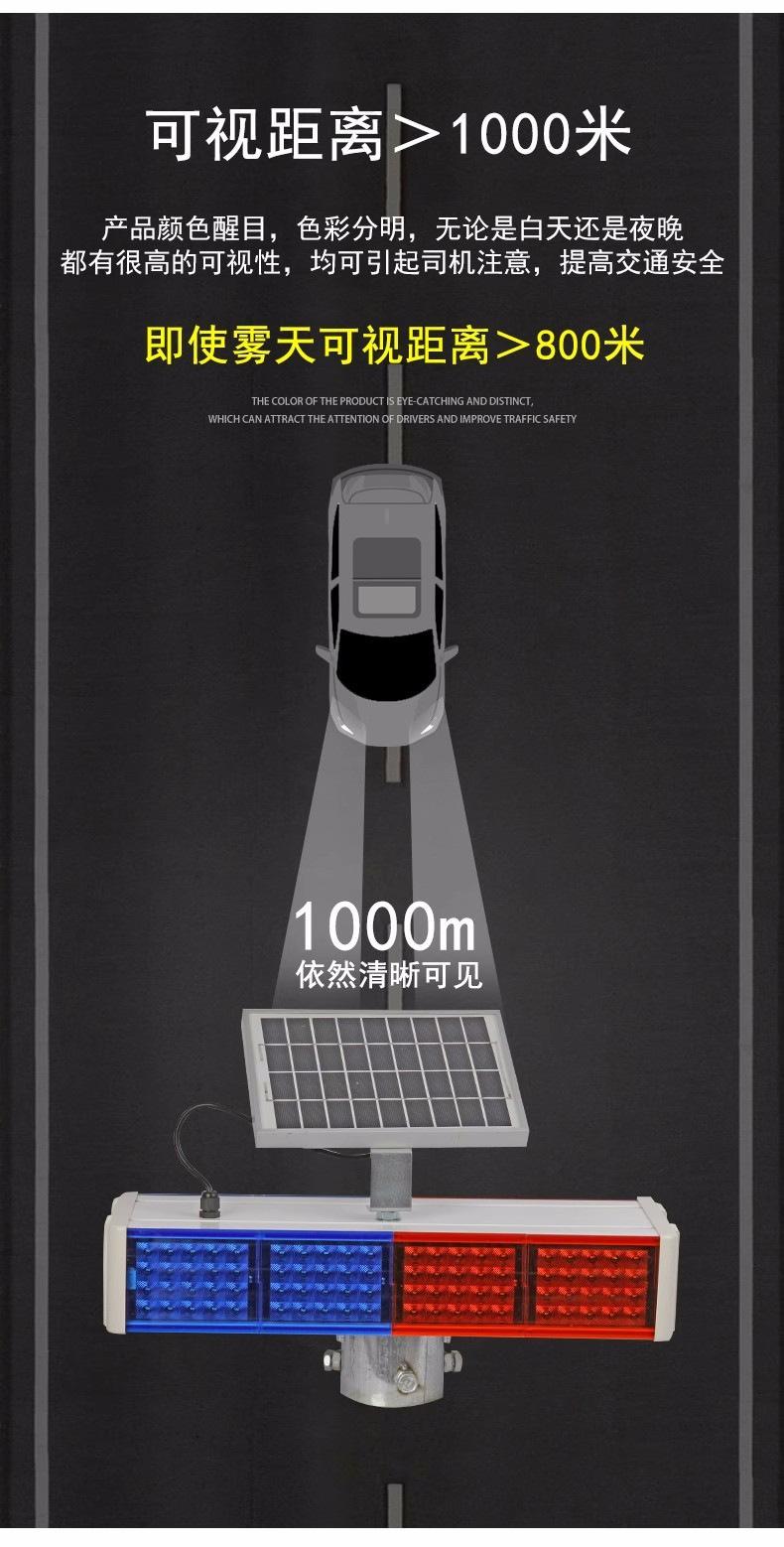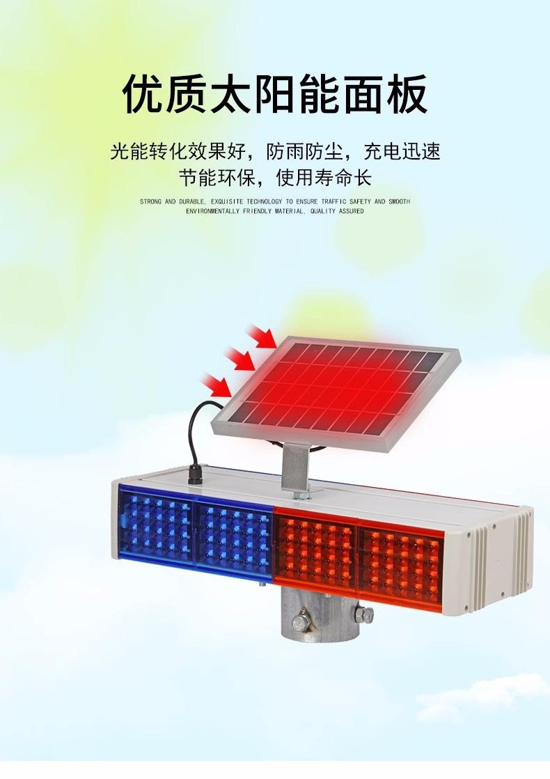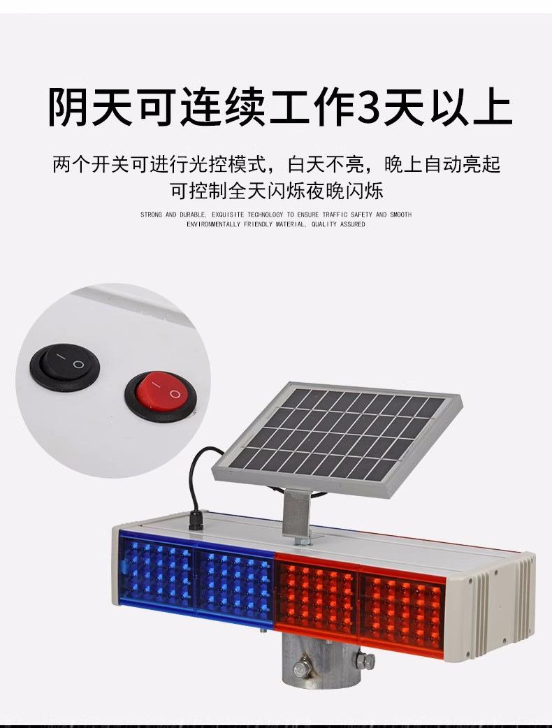 Luz de advertencia solar roja y azul, luz de advertencia de tráfico vial ...
