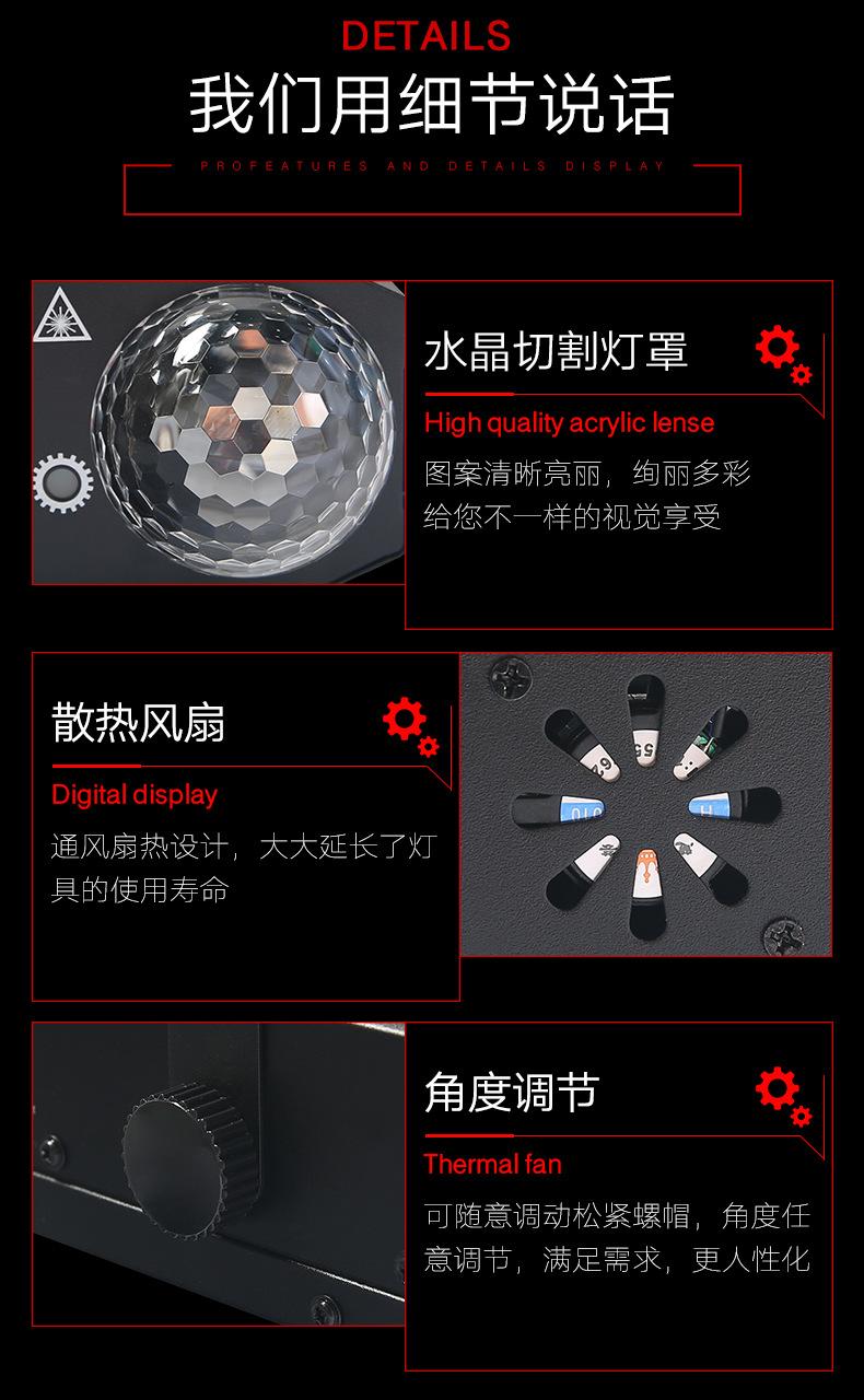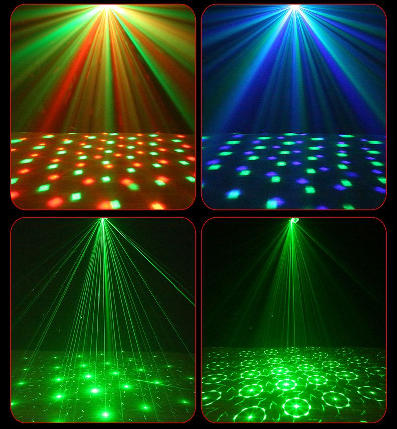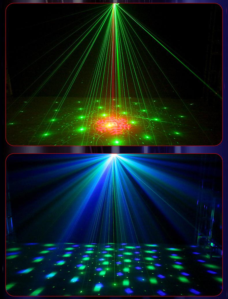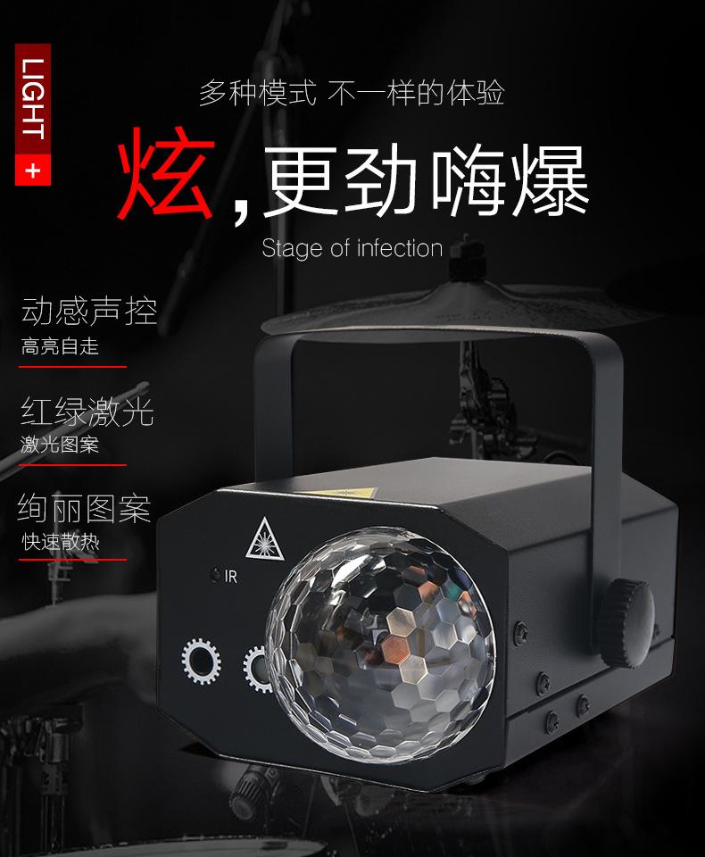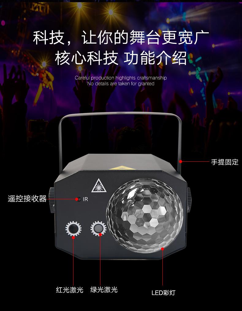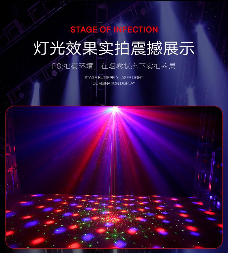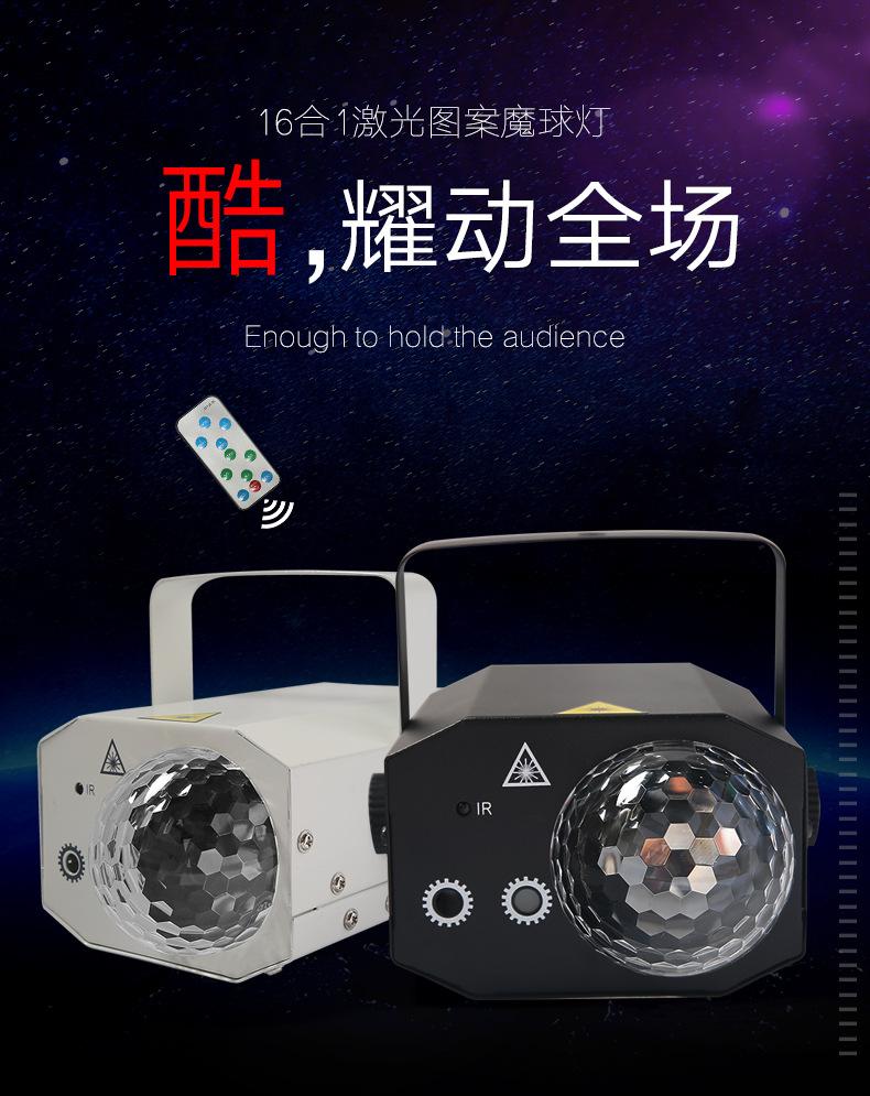 Ventas directas de fábrica Luz de escenario láser de 16 patrones LED de doble cabeza bola mágica luz de ambiente KTV control por voz luz de discoteca de colores