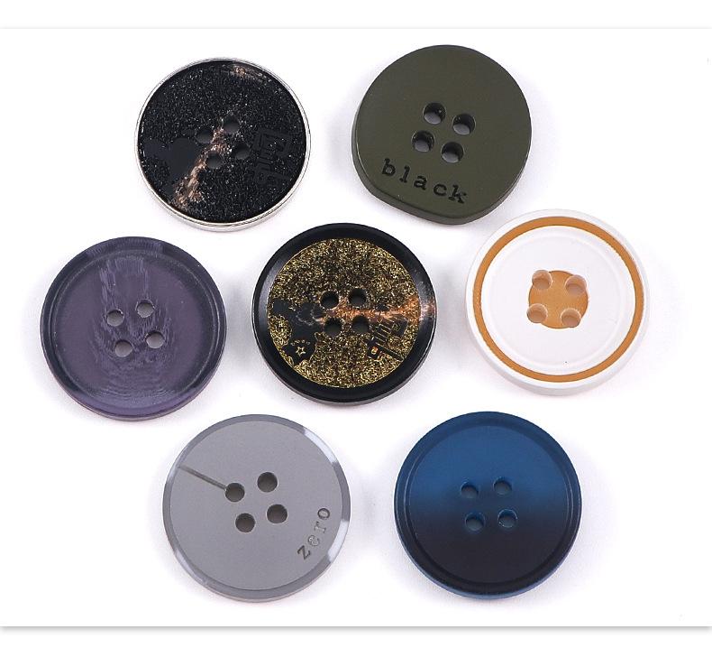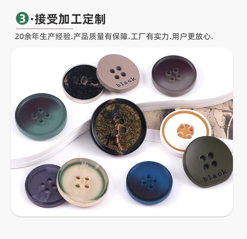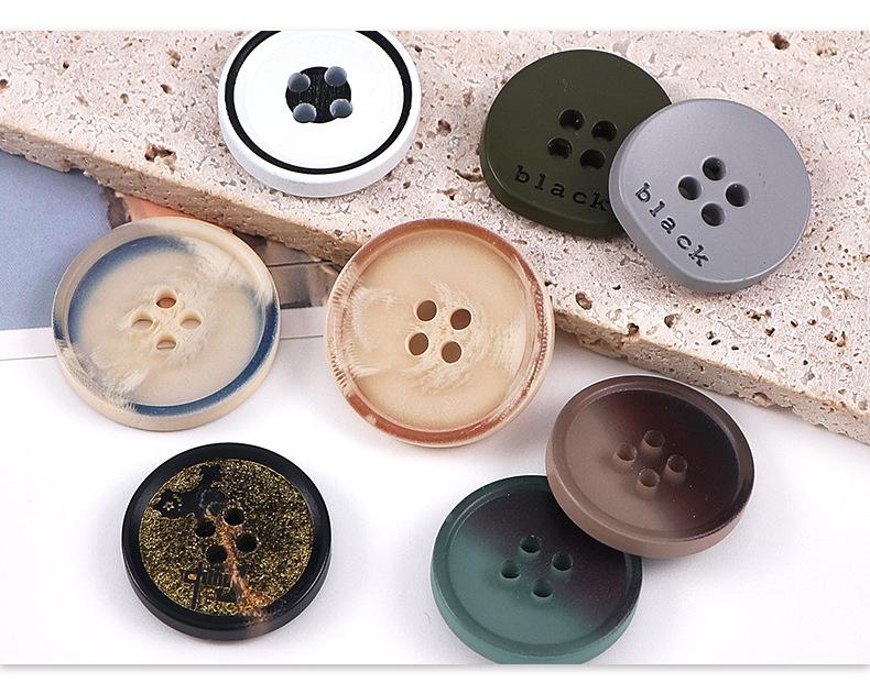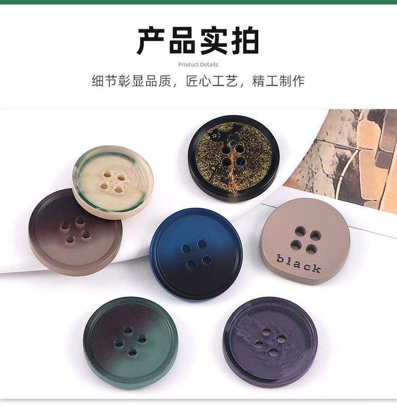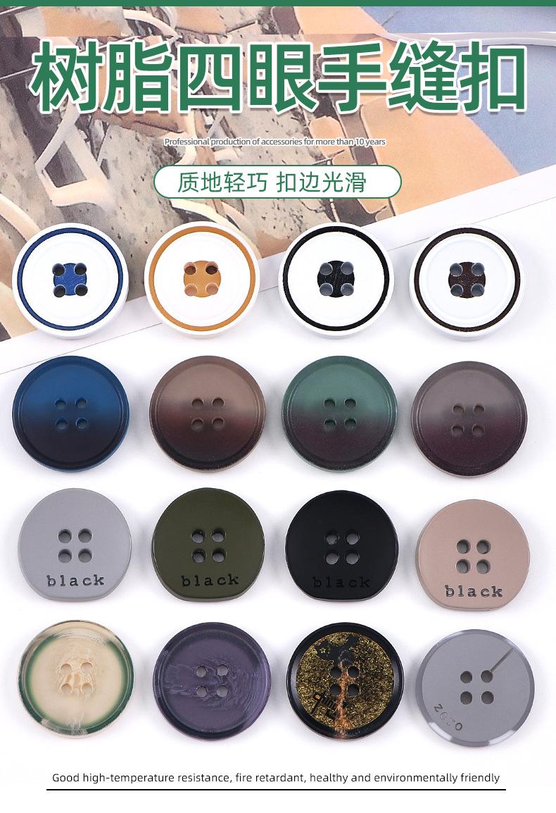 Cida fábrica punto venta al por mayor botón de resina abrigo cortavientos traje botones moda cuatro ojos cosido a mano botones de ropa