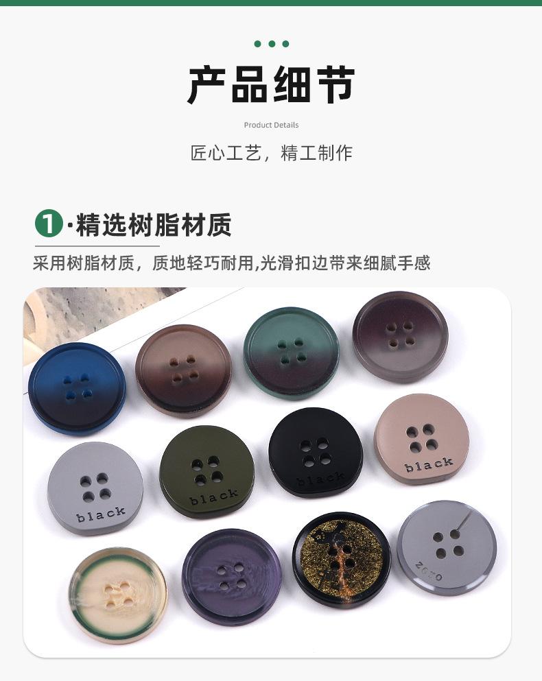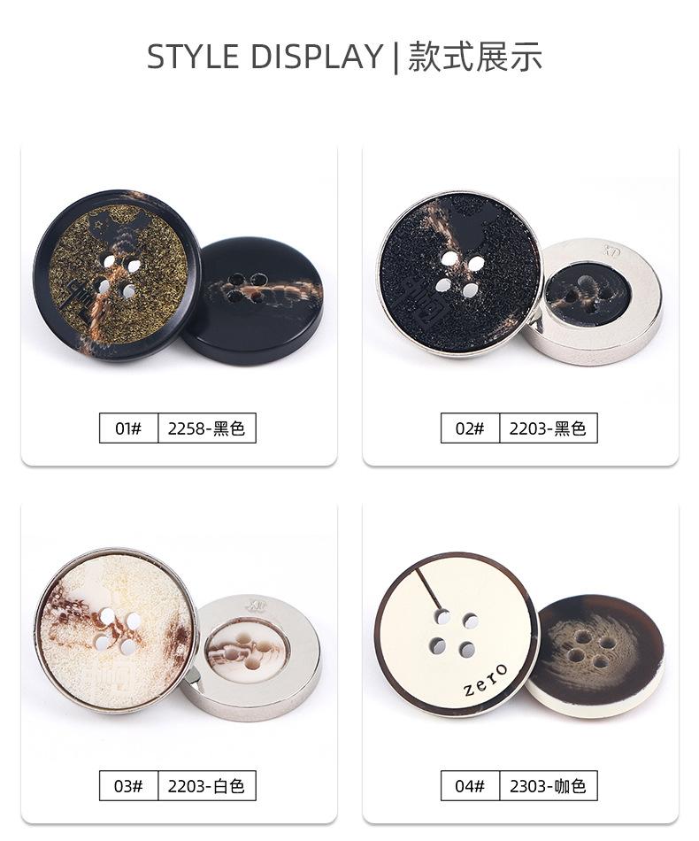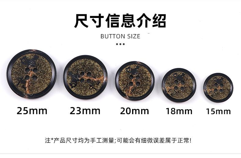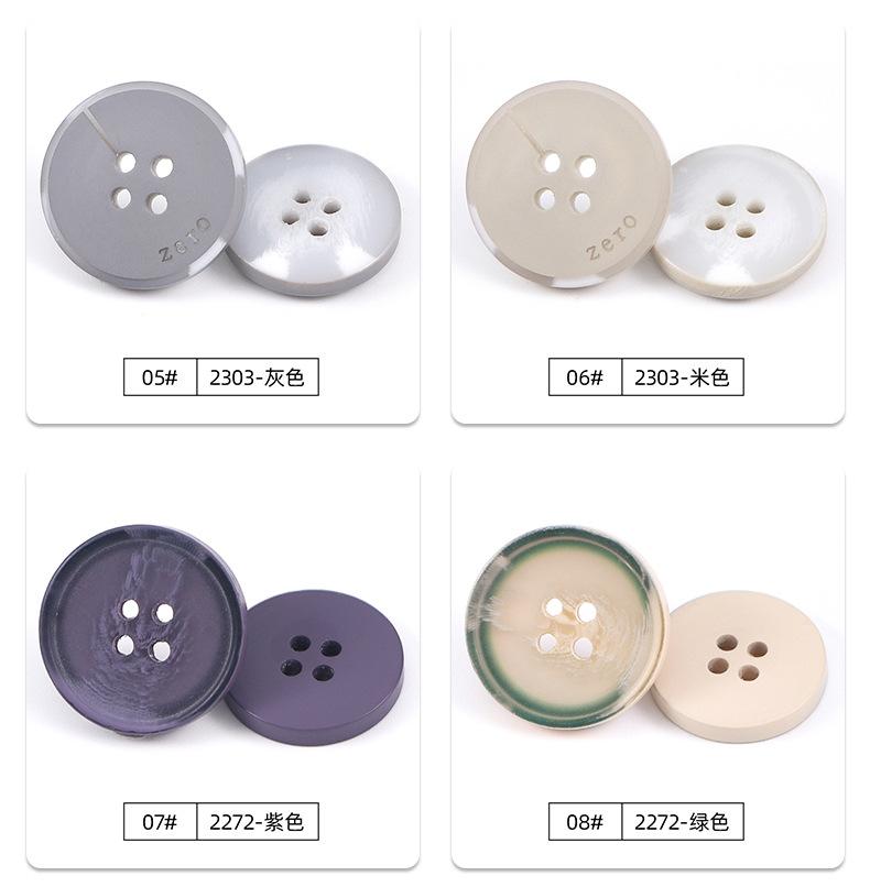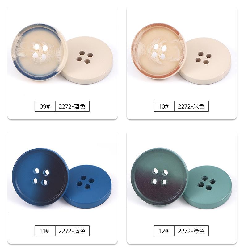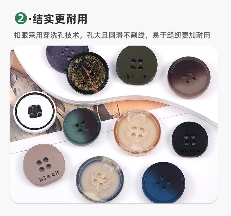 Cida fábrica punto venta al por mayor botón de resina abrigo cortavientos traje botones moda cuatro ojos cosido a mano botones de ropa