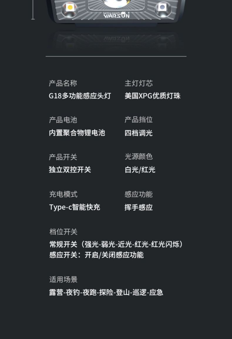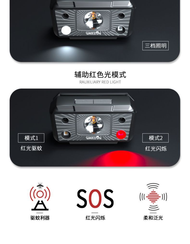 Wallson G18 faro de inducción de larga duración LED pesca nocturna luz fuerte carga impermeable lámpara de minero pesca faro de largo alcance
