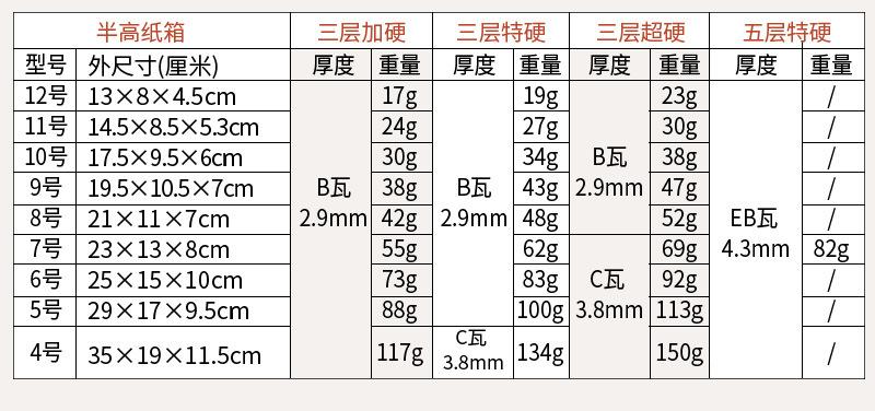 No. 7 (230*130*160mm), No. 8 (210*110*140mm), No. 3 (430*210*270mm), No. 12 (130*80*90mm), No. 10 (175*95*115m...