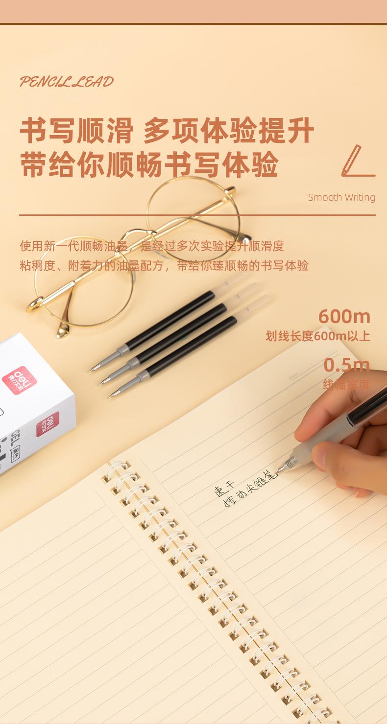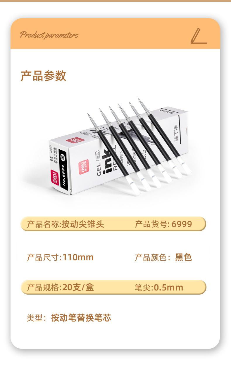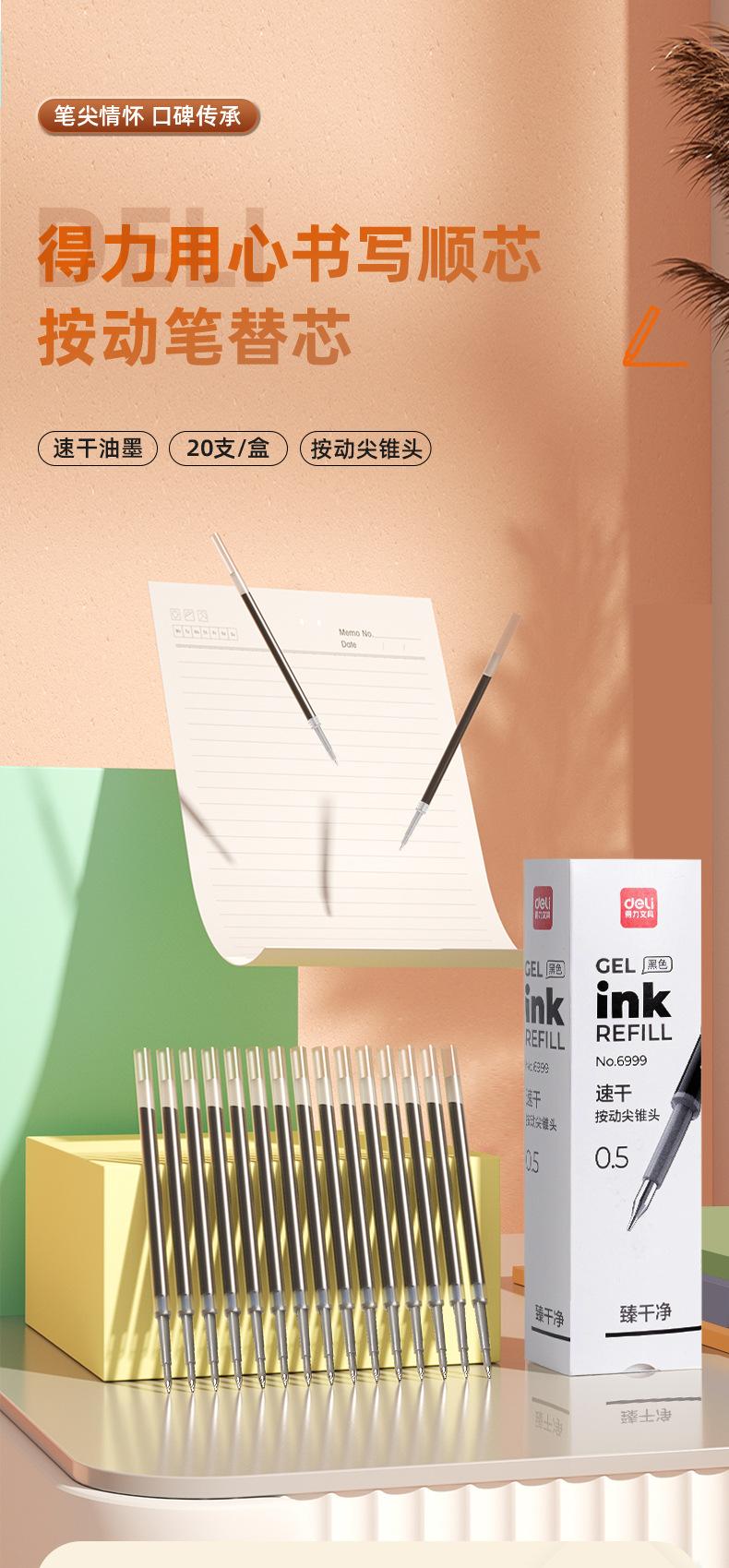 Deli 6999 Recarga de Pluma Neutral de Punta Presionable de Secado Rápido Examen de Estudiante 0.5 Negro Recarga de Pluma para Firma