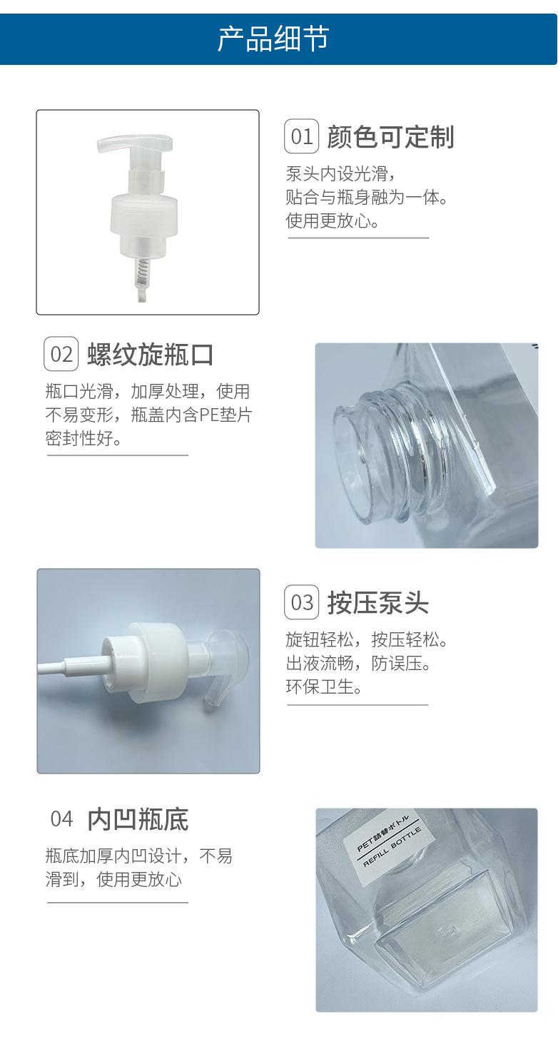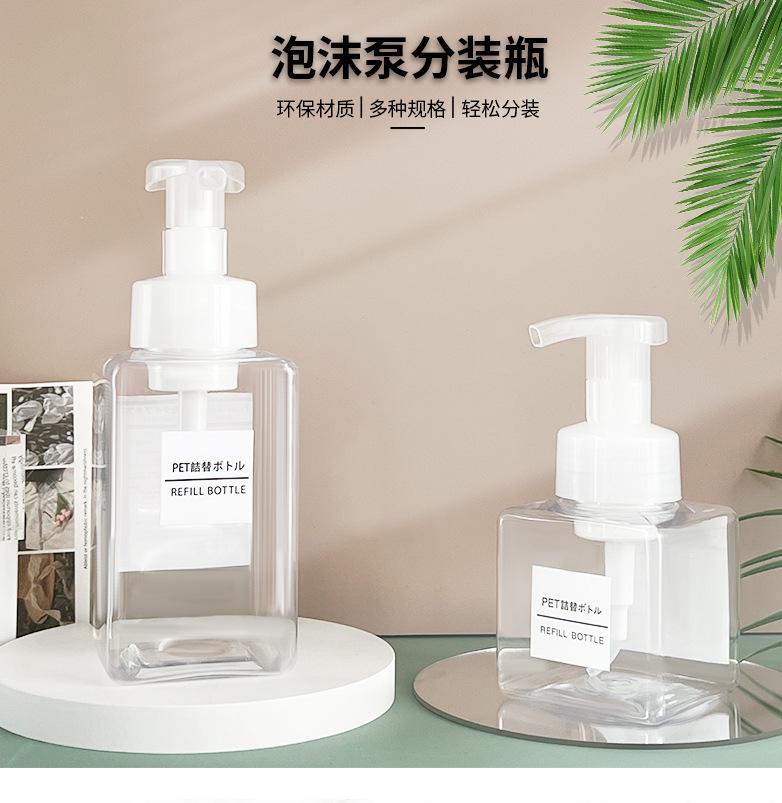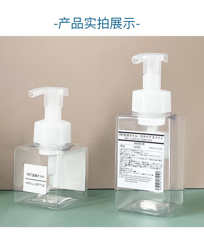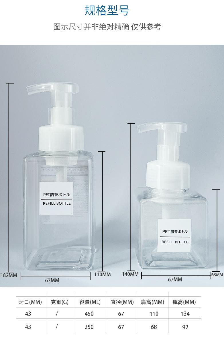 Fuente ventas directas 43 dientes cuadrado botella de espuma champú mousse gel de ducha bomba de burbujas botella de embalaje diario de cosméticos