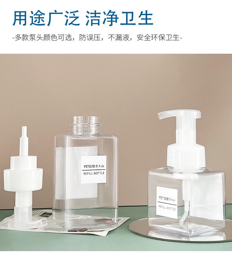 Botella de espuma de presión transparente para mascotas Spot, botella cuadrada para mousse, botella desinfectante de manos, bomba de espuma