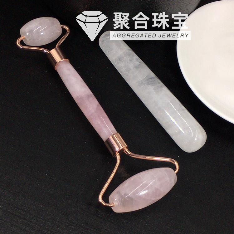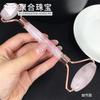 Masajeador facial orbital con varilla de jade de cristal rosa natural, instrumento de belleza universal, rodillo de doble rueda con forma de V para mujer