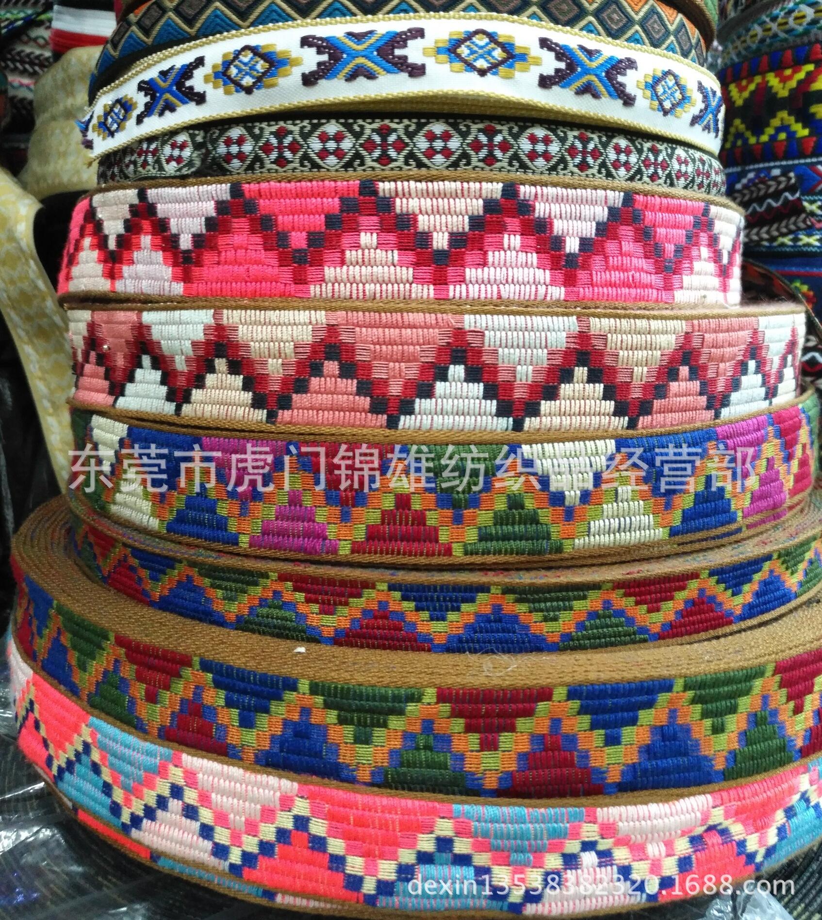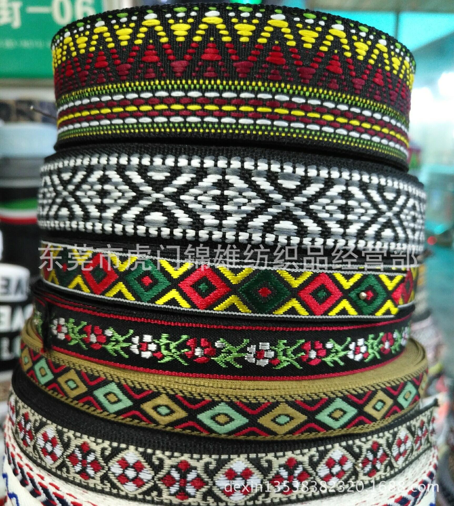Accesorios de ropa con bordado de estilo étnico, correas de equipaje, personalización de fábrica, materiales para zapatos y cinturones.