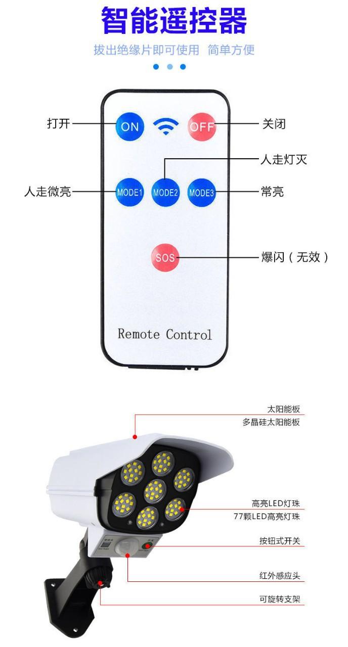 Built-in two 18650 battery simulation monitoring lamp (with remote control)