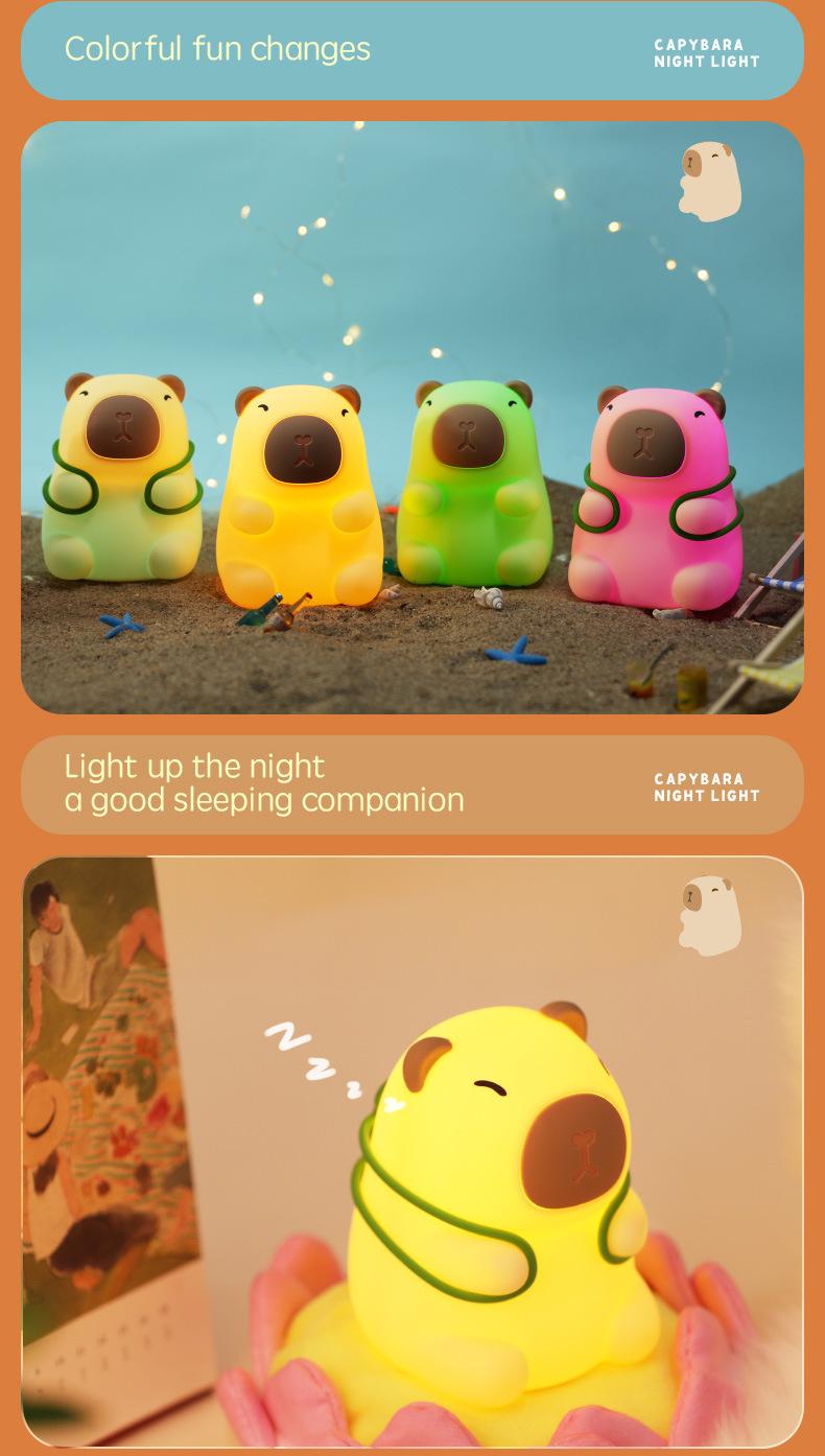 Luz Nocturna de Capibara Carga USB Atenuación de Tres Velocidades Luz de Palmadita de Silicona Dibujos Animados para Niños Luz Nocturna Colorida con Voz