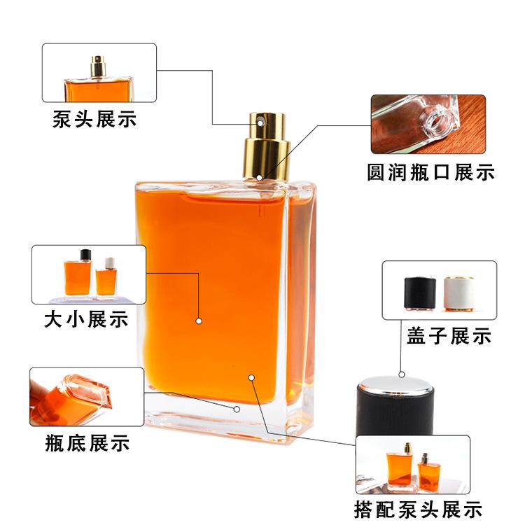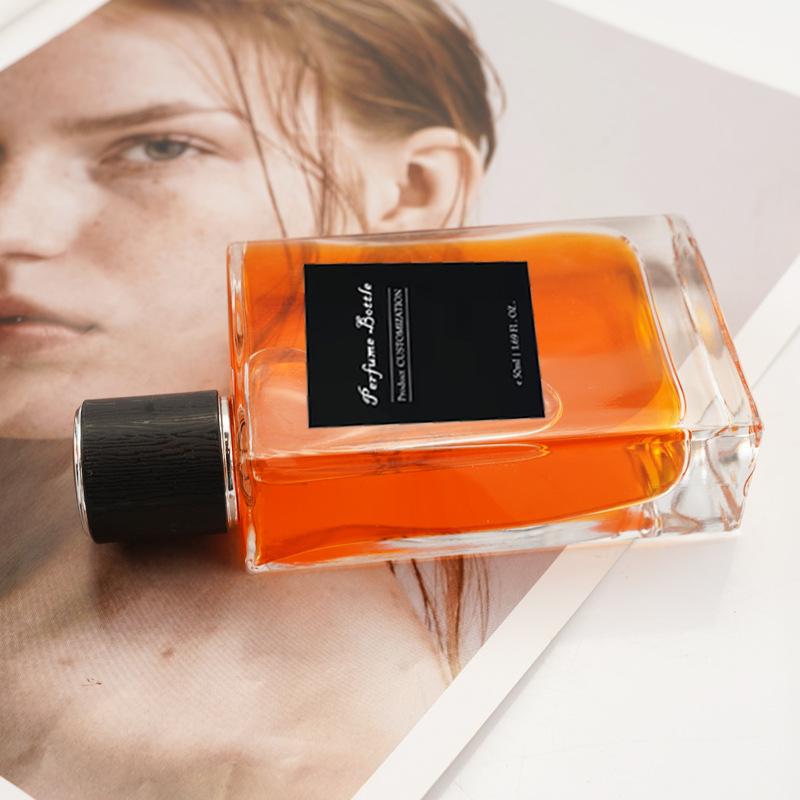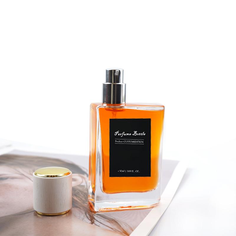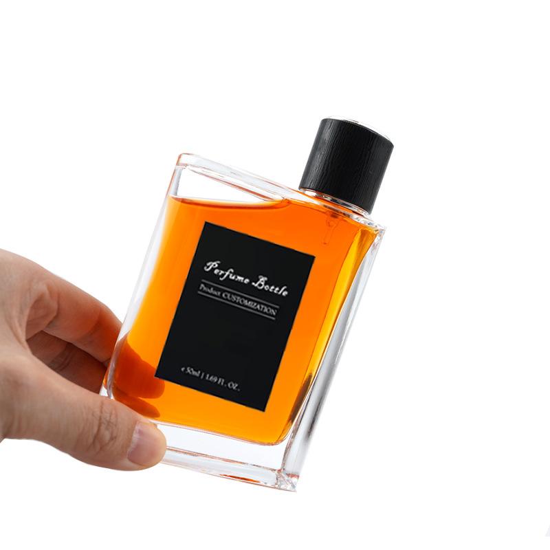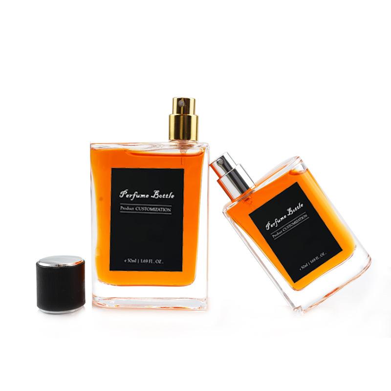 Botella de perfume de vidrio de 50 ml y 100 ml, venta al por mayor de fábrica, botella de vidrio de alto valor de color, botella vacía portátil