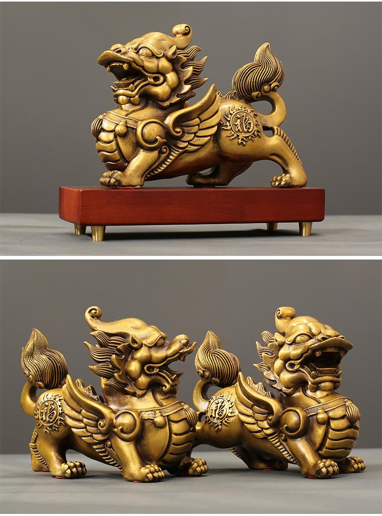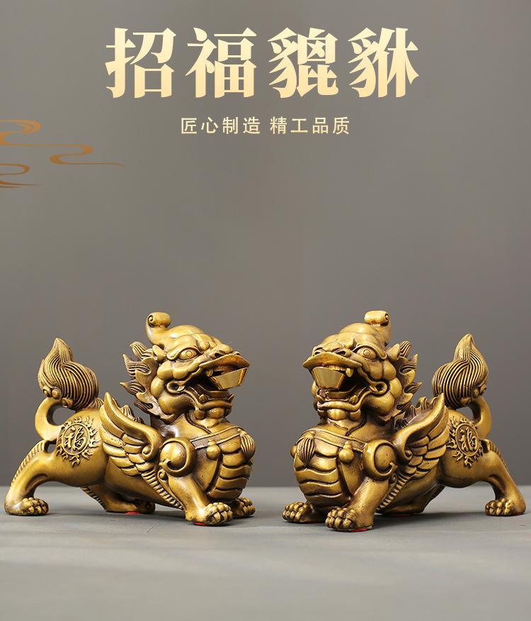Decoración de latón y cobre, un par de adornos de la suerte Piqiu, decoración del hogar de la sala de estar, decoración de la tienda de regalos de apertura